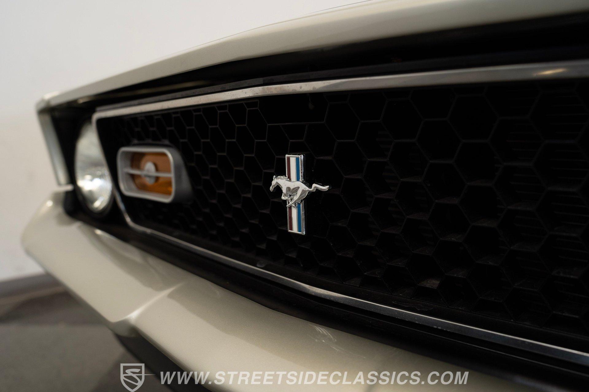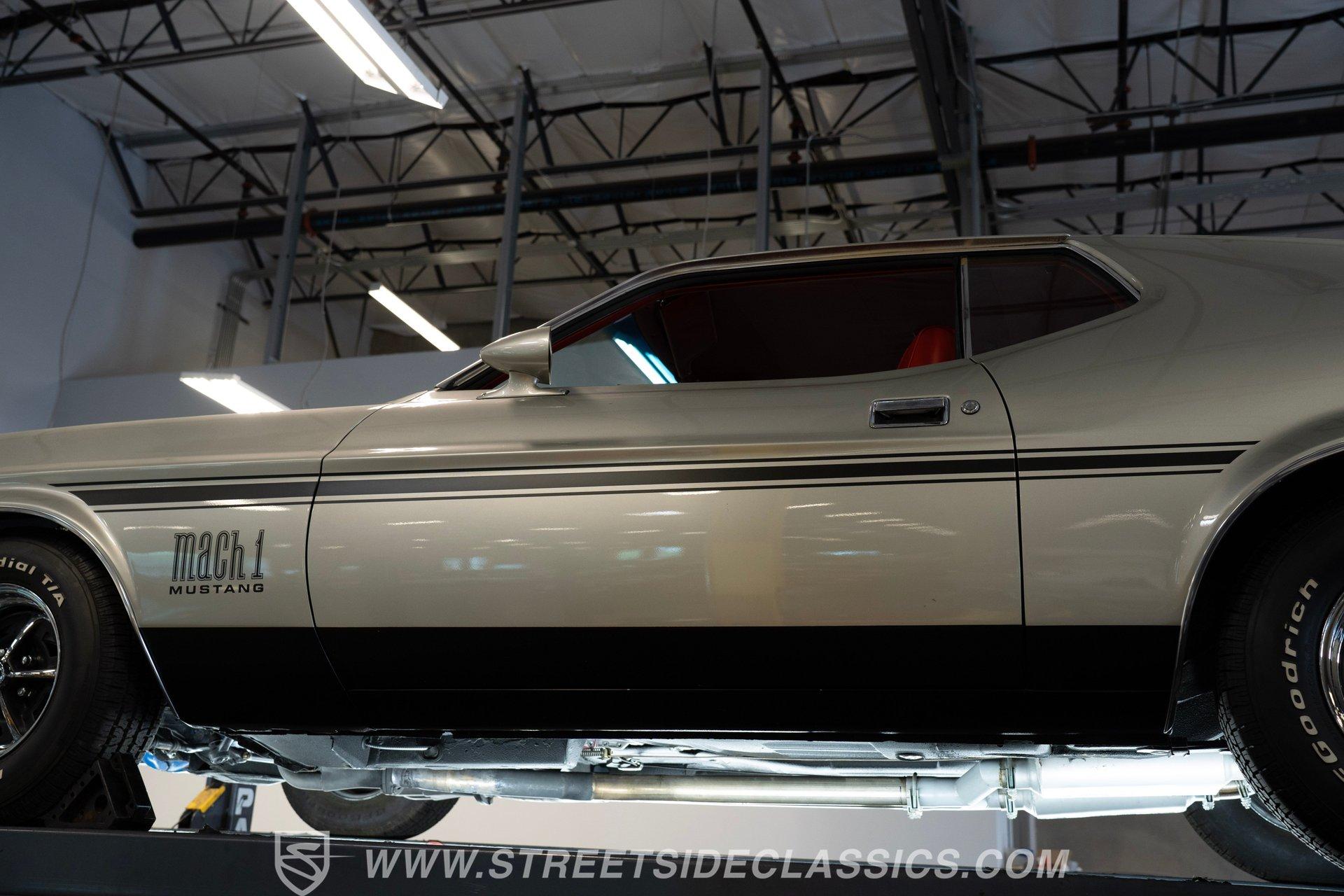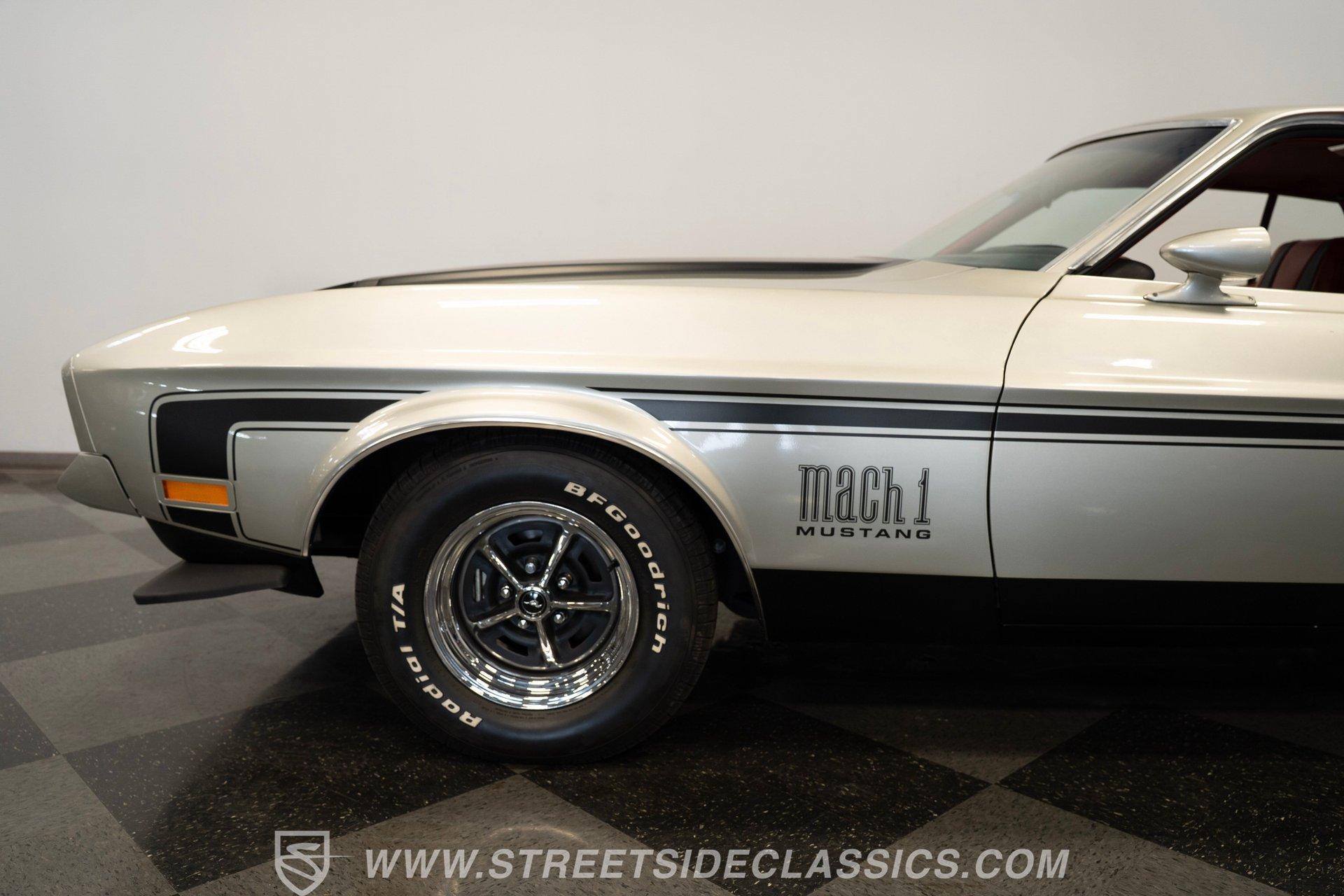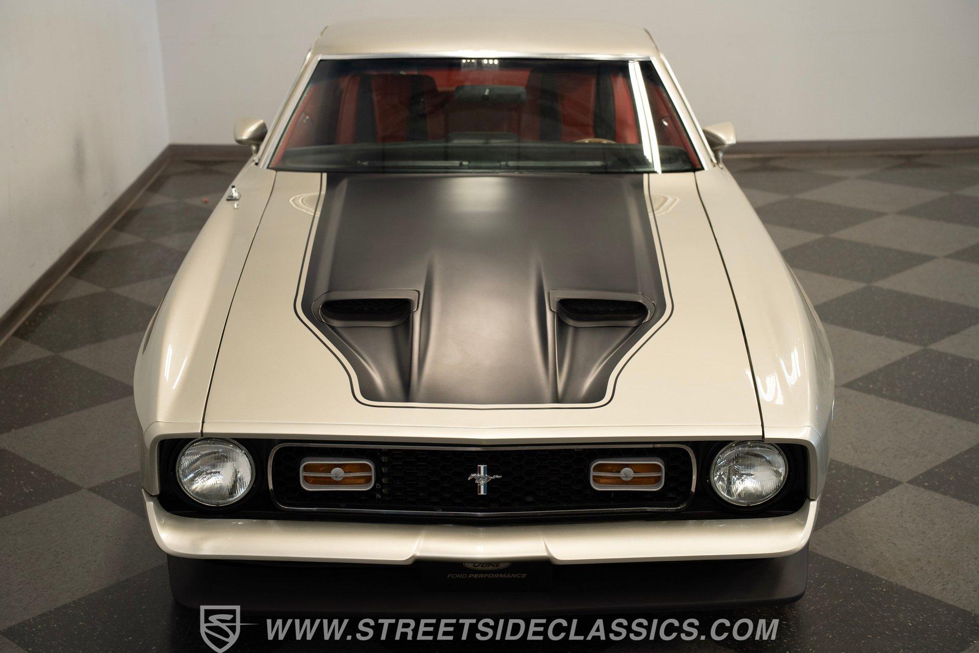 Step into a time machine of raw muscle and unfiltered excitement with this 1971 Ford Mustang Mach 1. This iconic fastback isn't just a car; it's a roaring statement of American automotive heritage, wrapped in a stunning light pewter metallic cloak with bold black vinyl stripes that command attention. From the moment you see its aggressive stance and signature black rear spoiler, you know this classic has been crafted for those who crave more than just transportation-it's about the thrill of the drive and the pride of ownership. This Mustang Mach 1 will ignite your passion for classic muscle, blending style and performance that demand respect.