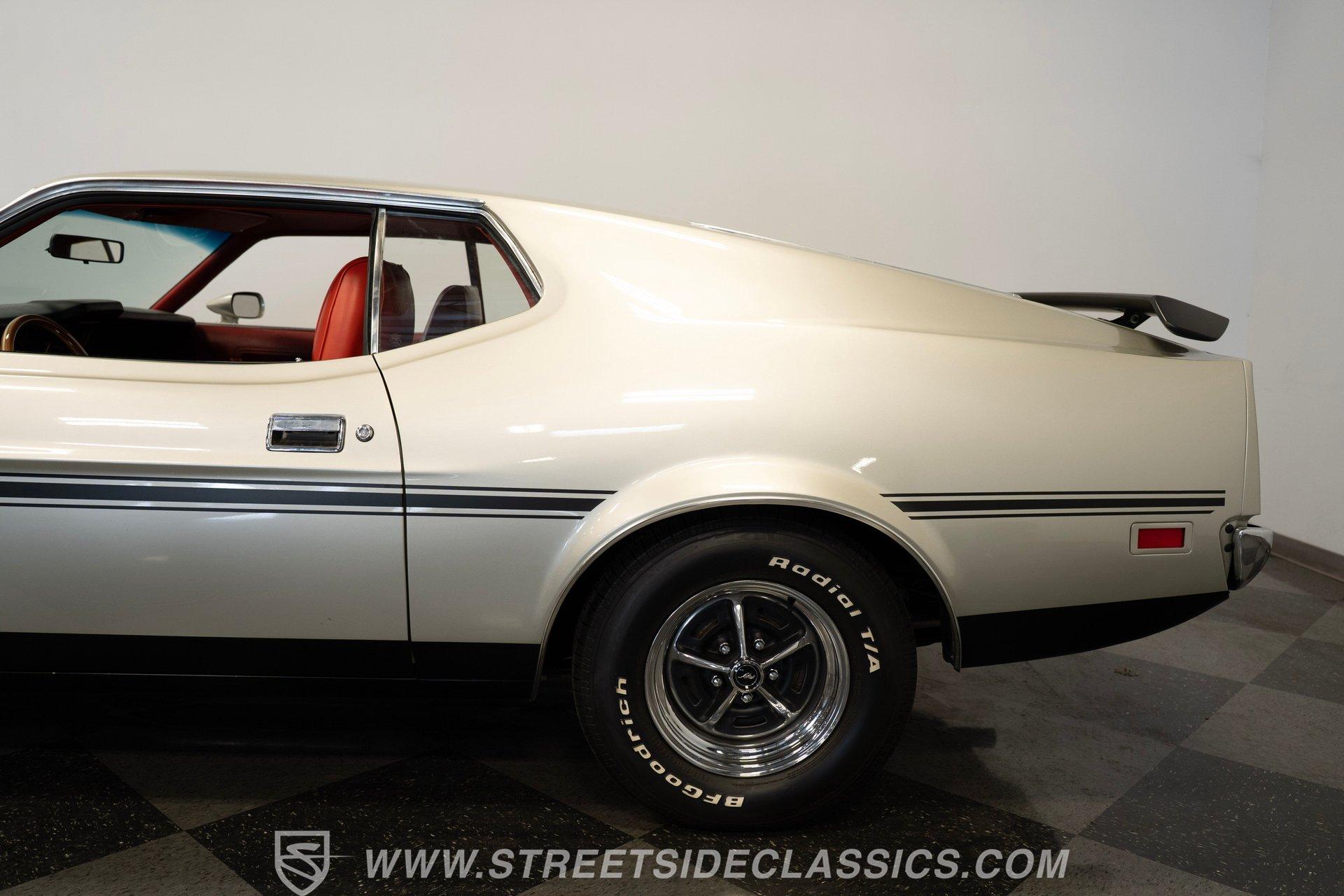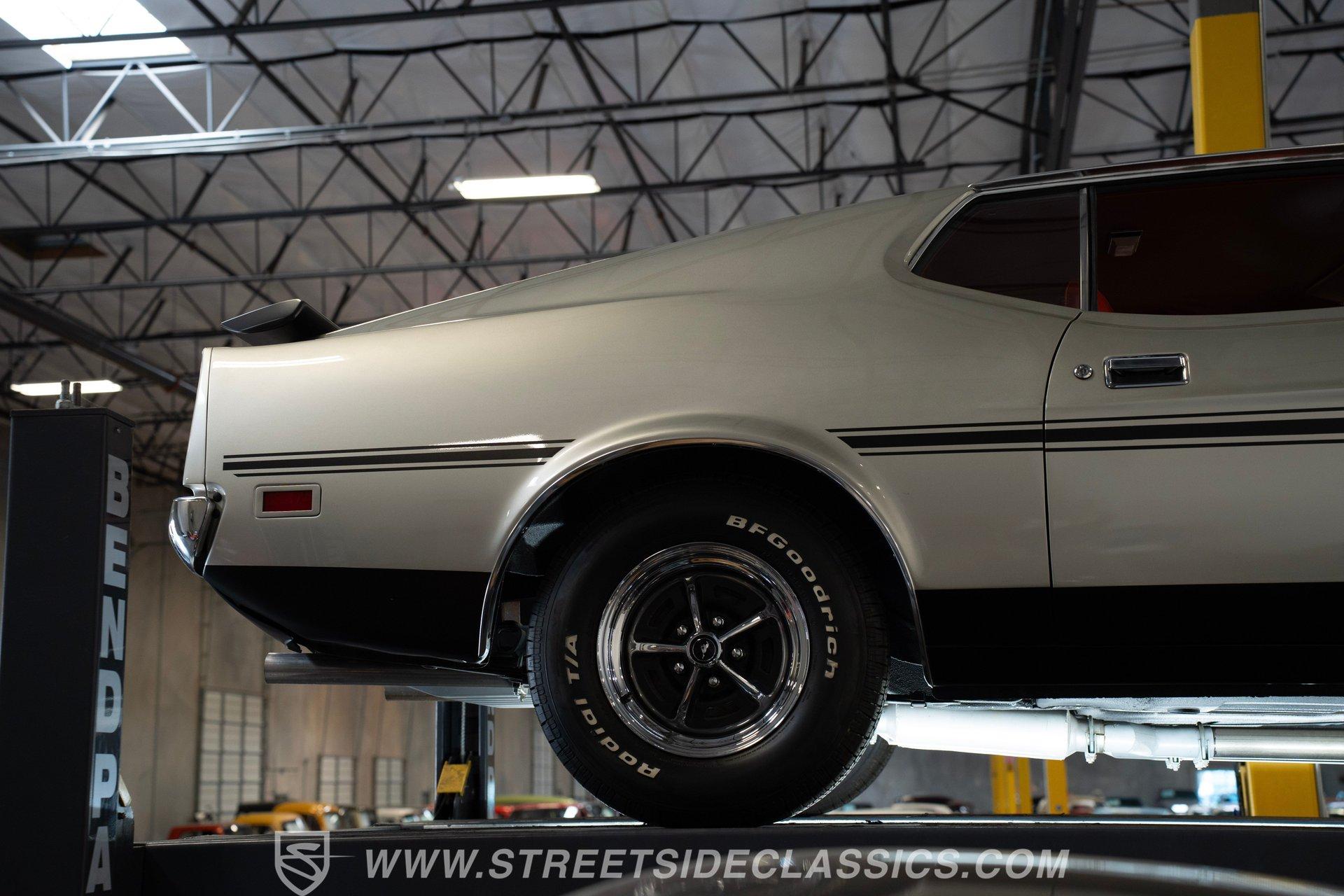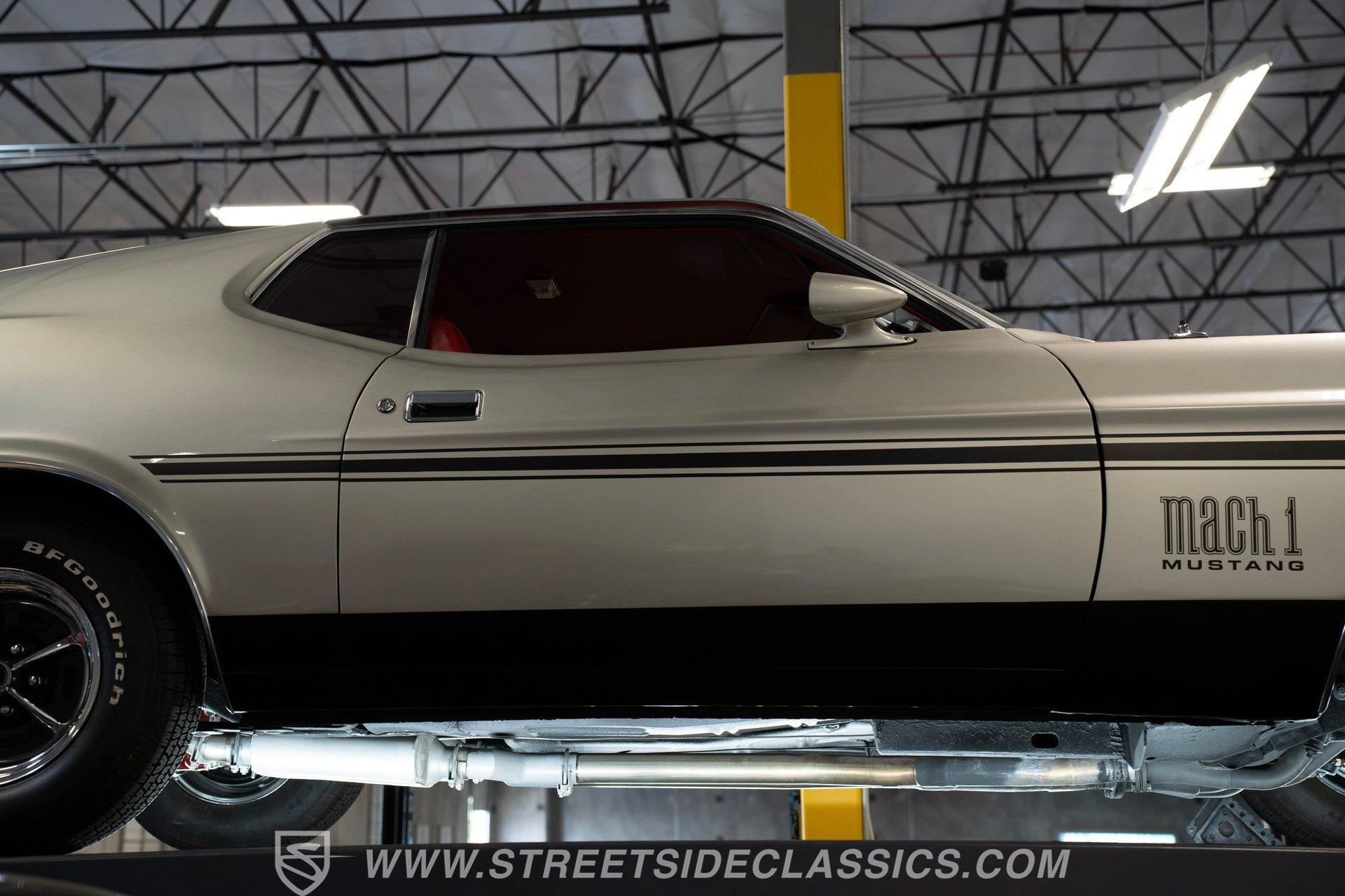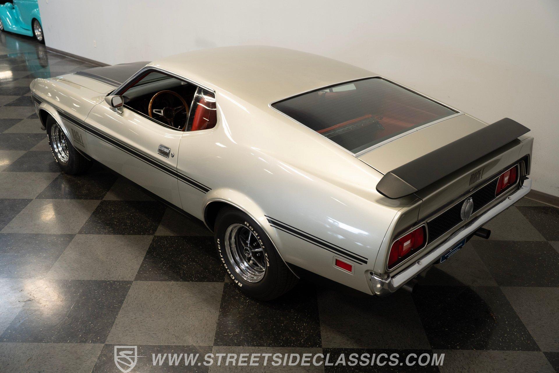 Step into a time machine of raw muscle and unfiltered excitement with this 1971 Ford Mustang Mach 1. This iconic fastback isn't just a car; it's a roaring statement of American automotive heritage, wrapped in a stunning light pewter metallic cloak with bold black vinyl stripes that command attention. From the moment you see its aggressive stance and signature black rear spoiler, you know this classic has been crafted for those who crave more than just transportation-it's about the thrill of the drive and the pride of ownership. This Mustang Mach 1 will ignite your passion for classic muscle, blending style and performance that demand respect.