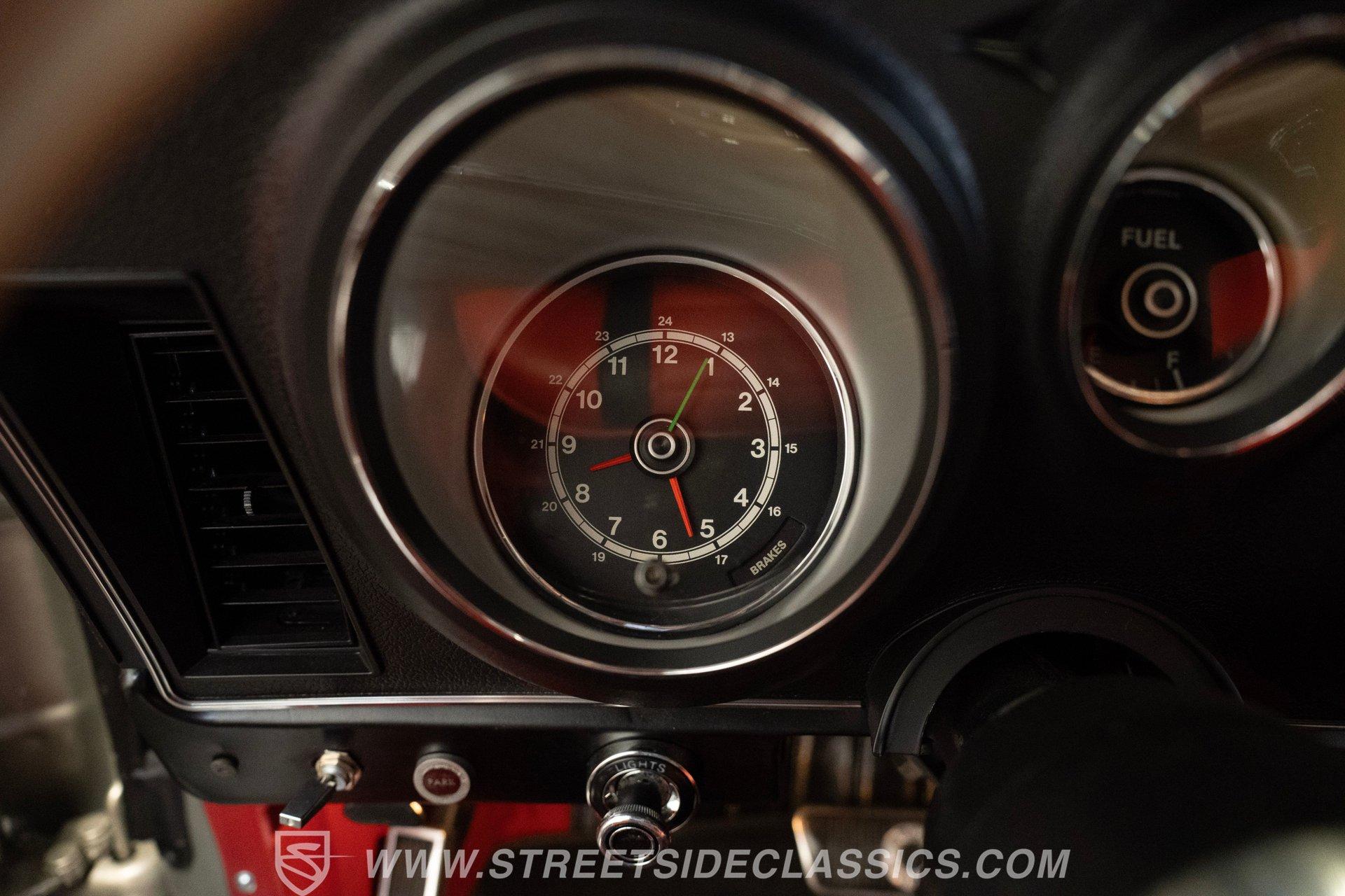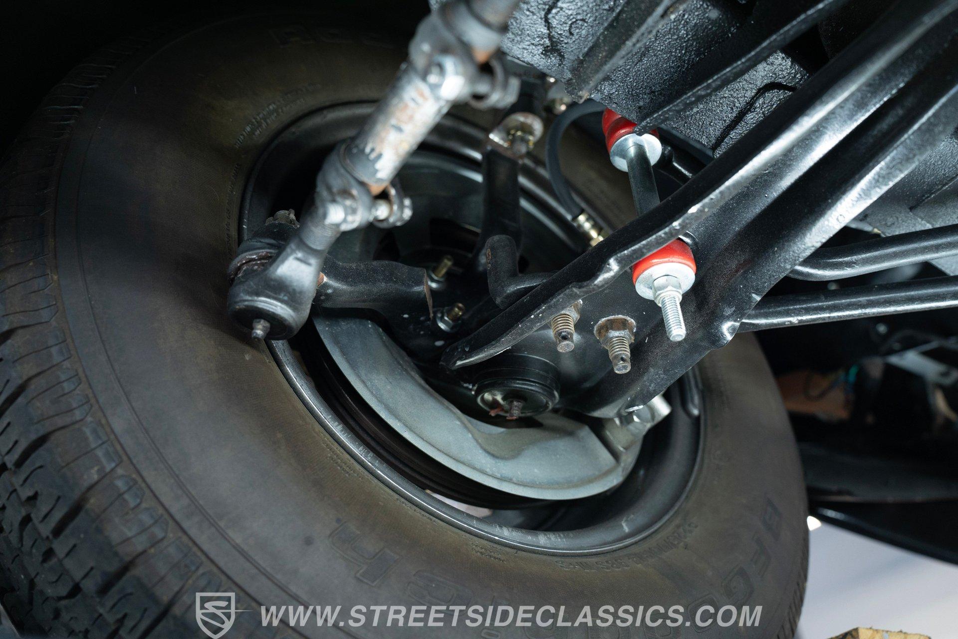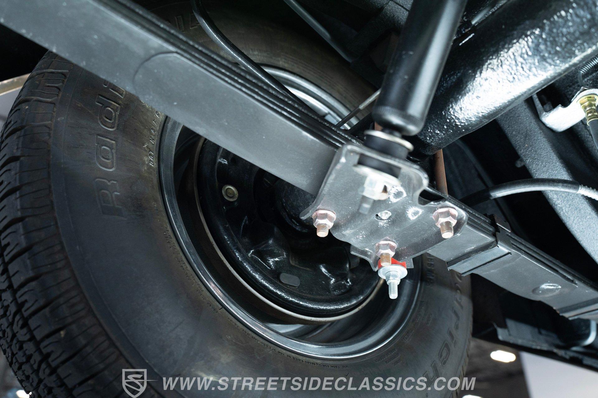 Slide into the vermillion red vinyl bucket seats and immediately feel the blend of vintage comfort and bold style. The interior, recently refreshed with care, features a retro AM/FM/AUX stereo deck with Bluetooth connectivity that bridges classic aesthetics with modern convenience. The tactile feel of the vinyl, paired with the classic console shifter, creates an authentic driving atmosphere that invites you to savor every moment behind the wheel.