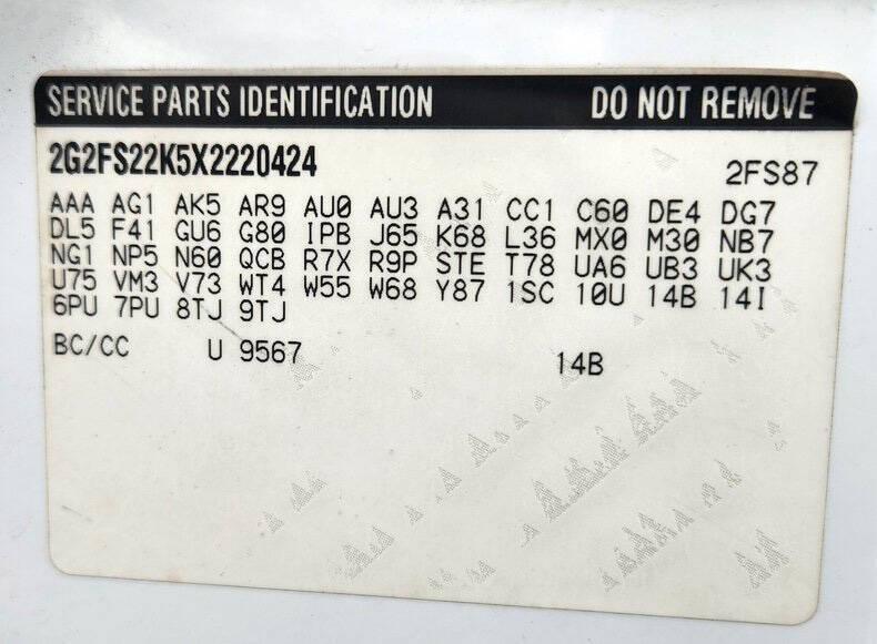 - VIN Code2G2FS22K5X2220424