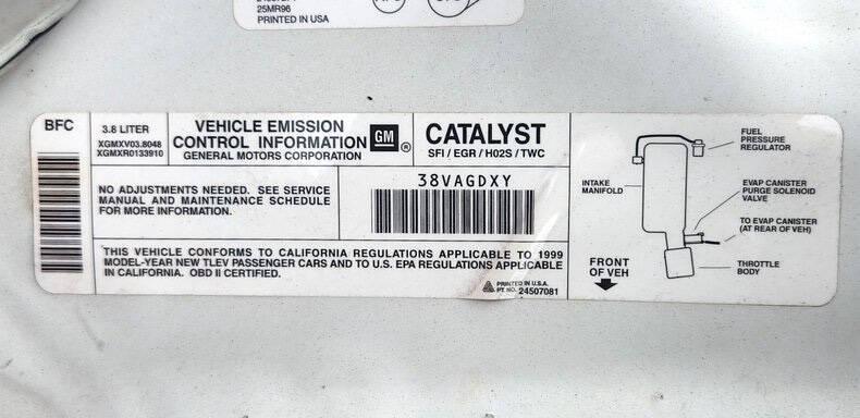9807 Actual Miles 3.8L Fuel Injected V6 Engine 4-Speed Automatic Overdrive Transmission Factory Artic White Exterior with Gray Cloth Interior Factory T-Tops Air Conditioning AM/FM Stereo Power Windows Power Locks Power Seats Power Mirrors Power 4-Wheel Disc Brakes Cruise Control Rear Defrost New Kumbo Solus 235/55R16 Radial Tires Clean CARFAX -Only 2 owners