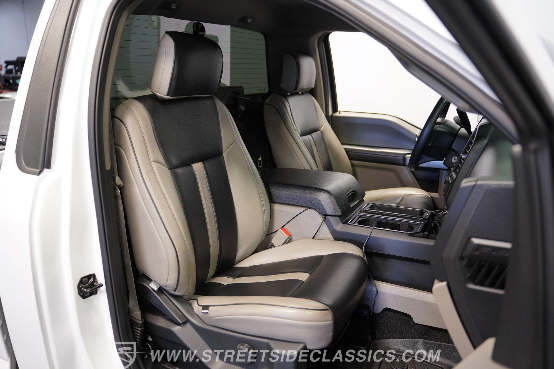 Step inside and experience a cabin designed for both luxury and function. The custom Katzkin leather seats come heated for comfort during every drive, while a custom fitted center console from another F-150 model adds both style and practicality. Power windows, power locks, and power seats make every adjustment effortless, complemented by a modern navigation system and satellite radio to keep you connected. WeatherTech floor mats protect the carpet, ensuring this truck stays as pristine as the day it rolled out.