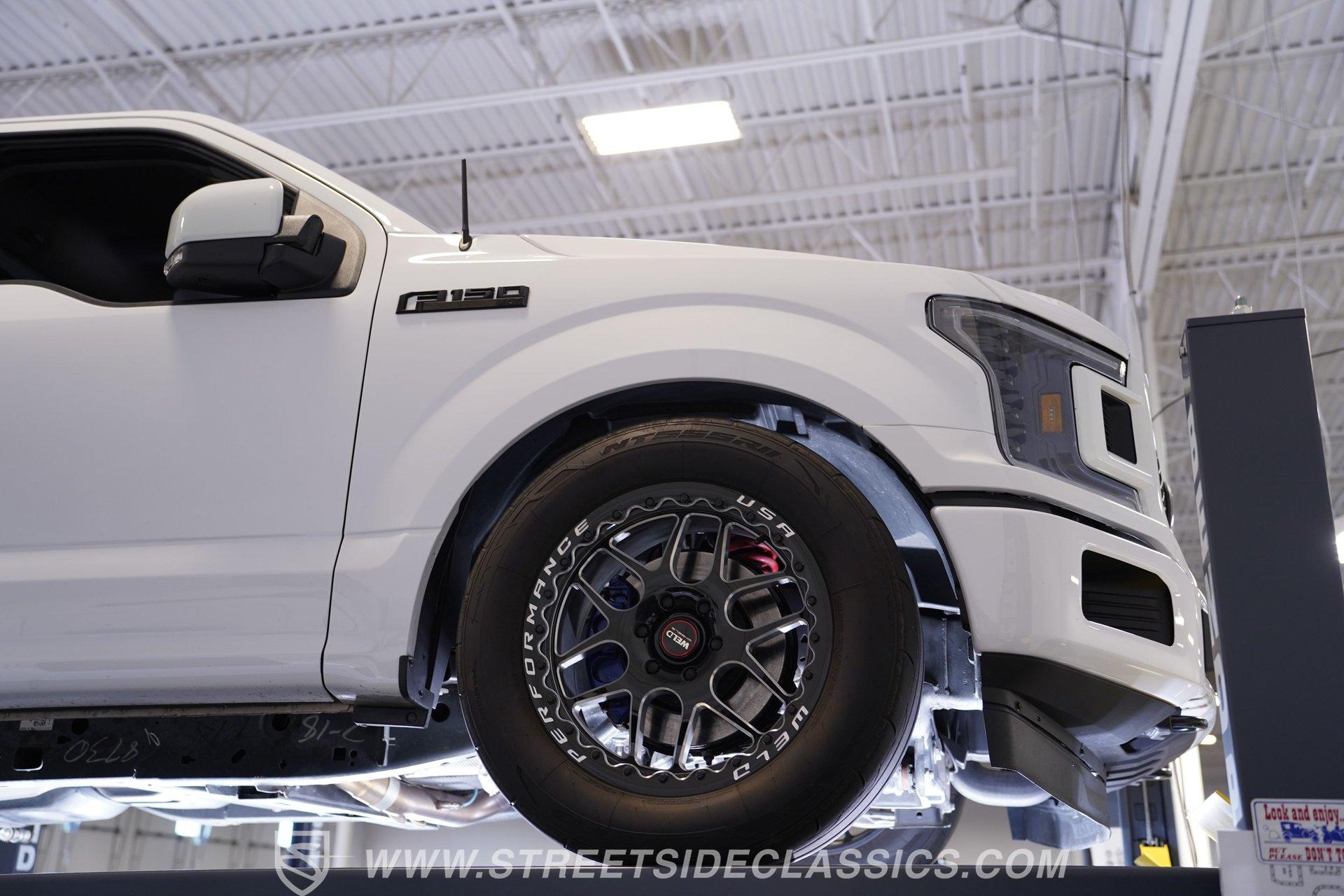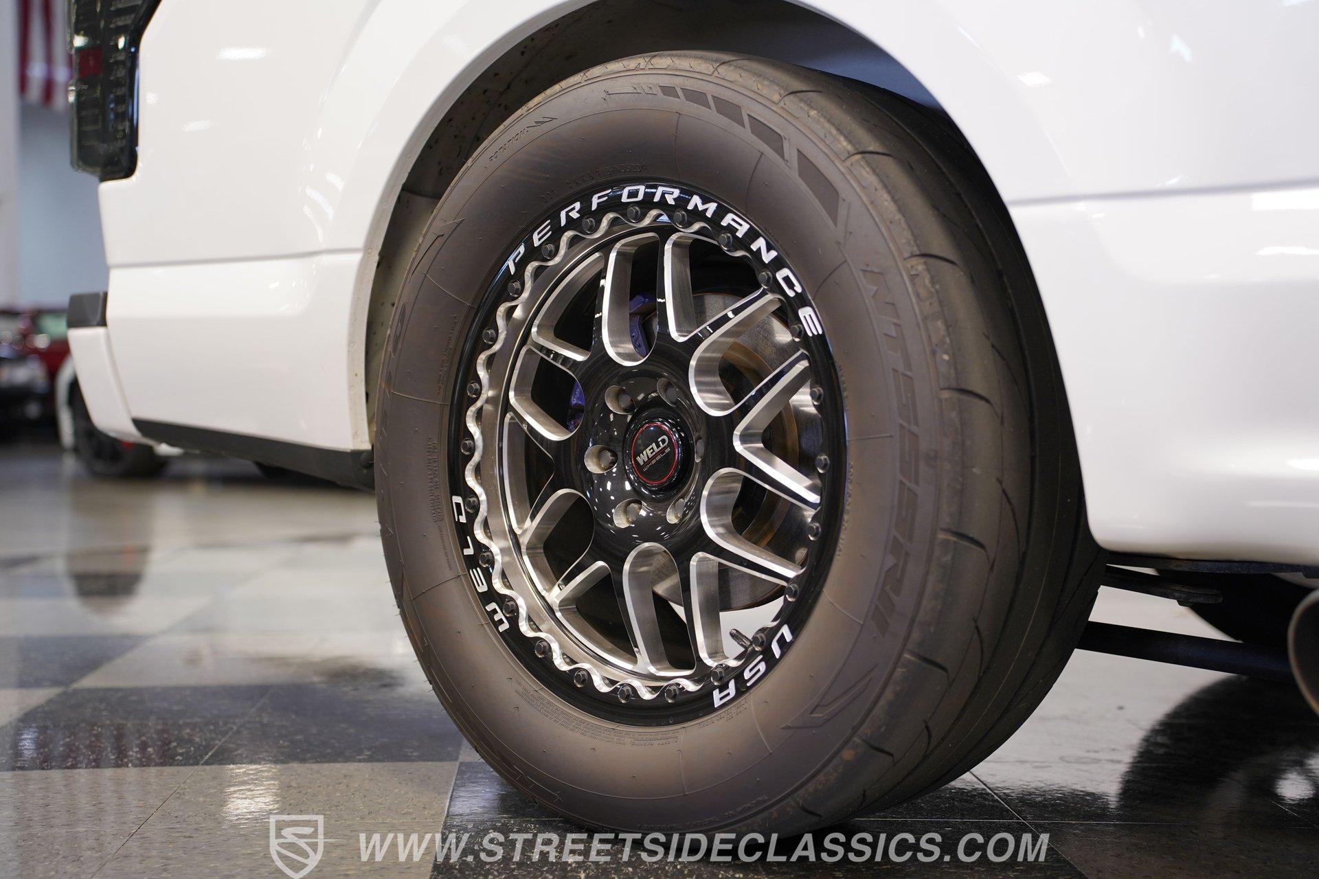 Under the hood lurks a 5.0L ProCharged V8 that commands attention with its aggressive rumble and blistering power delivery. Running on E85, this beast is tuned for both flexibility and ferocious performance. The 10-speed automatic 10R80 transmission expertly channels the torque to the 8.8 rear axle, while the lowered factory-style suspension with front coilovers and rear Caltracs ensures razor-sharp handling. Weld Racing 20'' beadlock wheels wrapped in Nitto NT55RII tires complete the package, delivering grip and confidence for any street or track adventure.