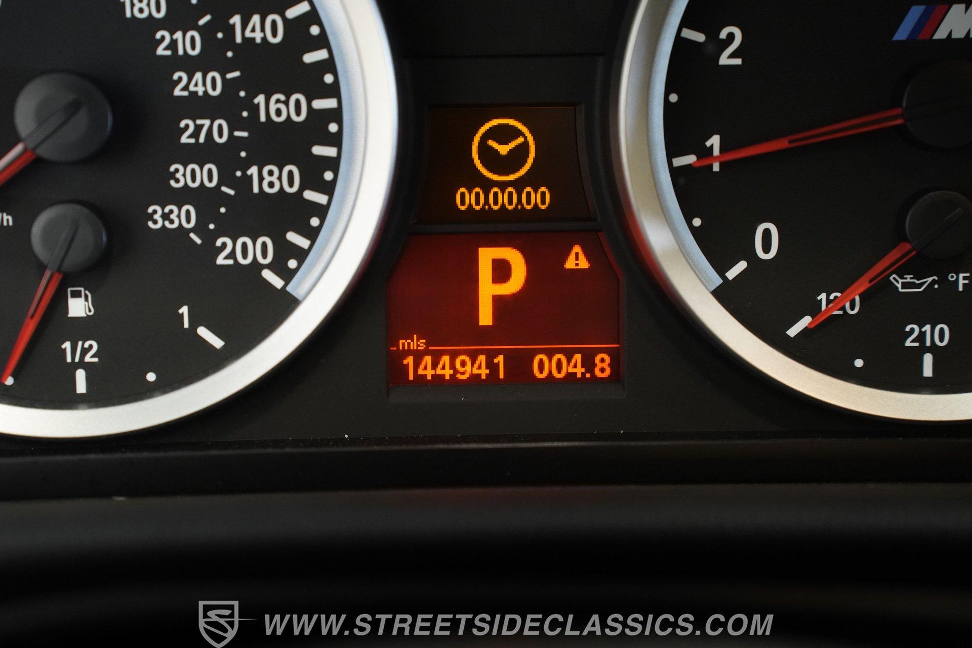 Inside, BMW didn't forget that the M3 also needed to be a luxury car. A driver-centric cockpit begins with a pair of supportive and plush bucket seats. A power-assisted, M-spec steering wheel comes complete with thumb controls for the stereo and cruise control. A dual-pod gauge cluster features a 200 mph speedometer and a 9,000 rpm tachometer with colored warning lights to alert the driver when approaching the redline. A digital tachometer shows off this car's 144,941 actual miles, proving there is plenty of joy left to be had from behind the wheel. Heated power seats, locks, windows, and mirrors, along with navigation, dual-zone air conditioning, and cruise control, provide all the modern amenities one could ask for. At the same time, the Bluetooth-enabled AM/FM/AUX/CD premium sound system handles soundtrack duties.