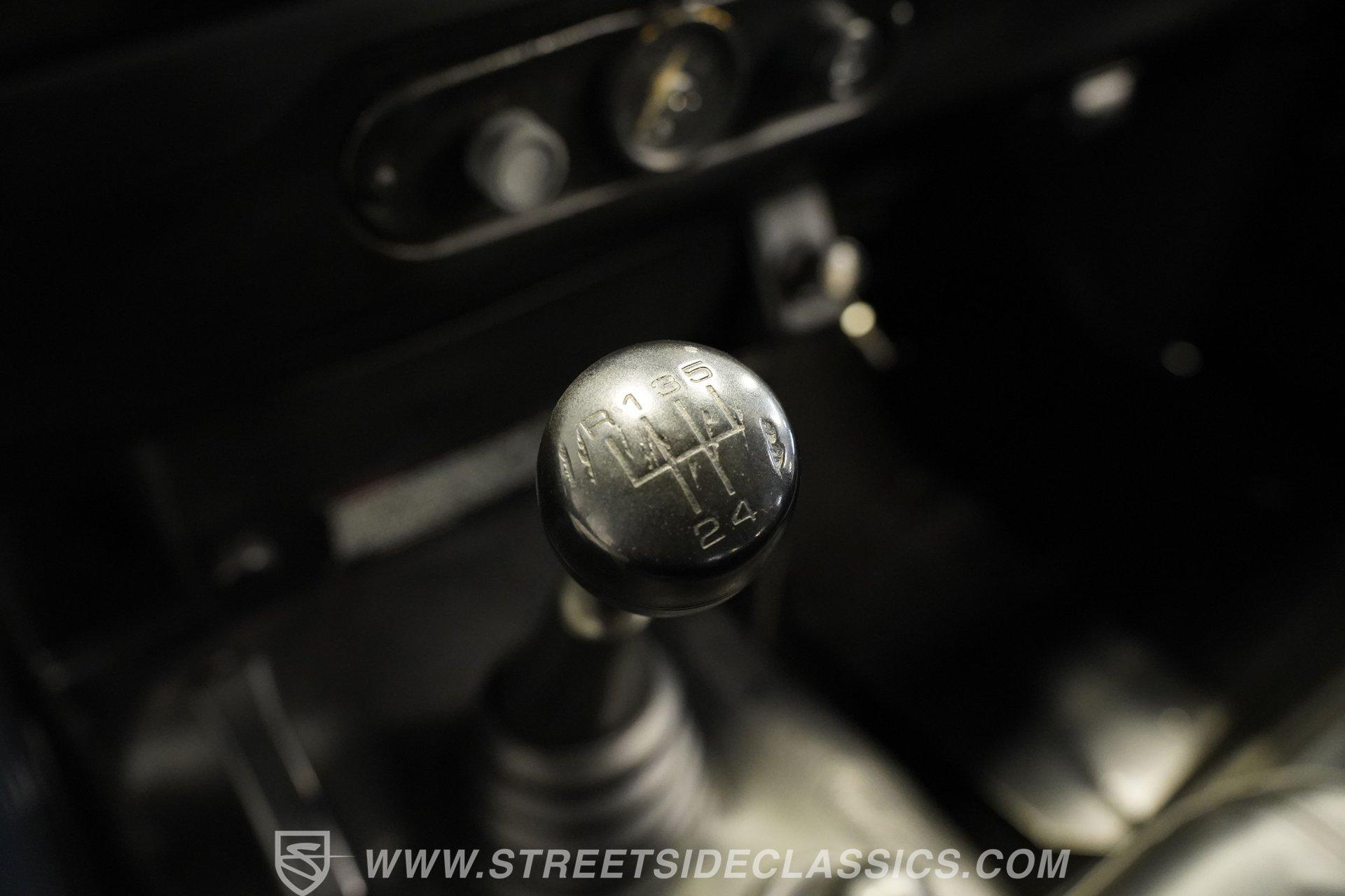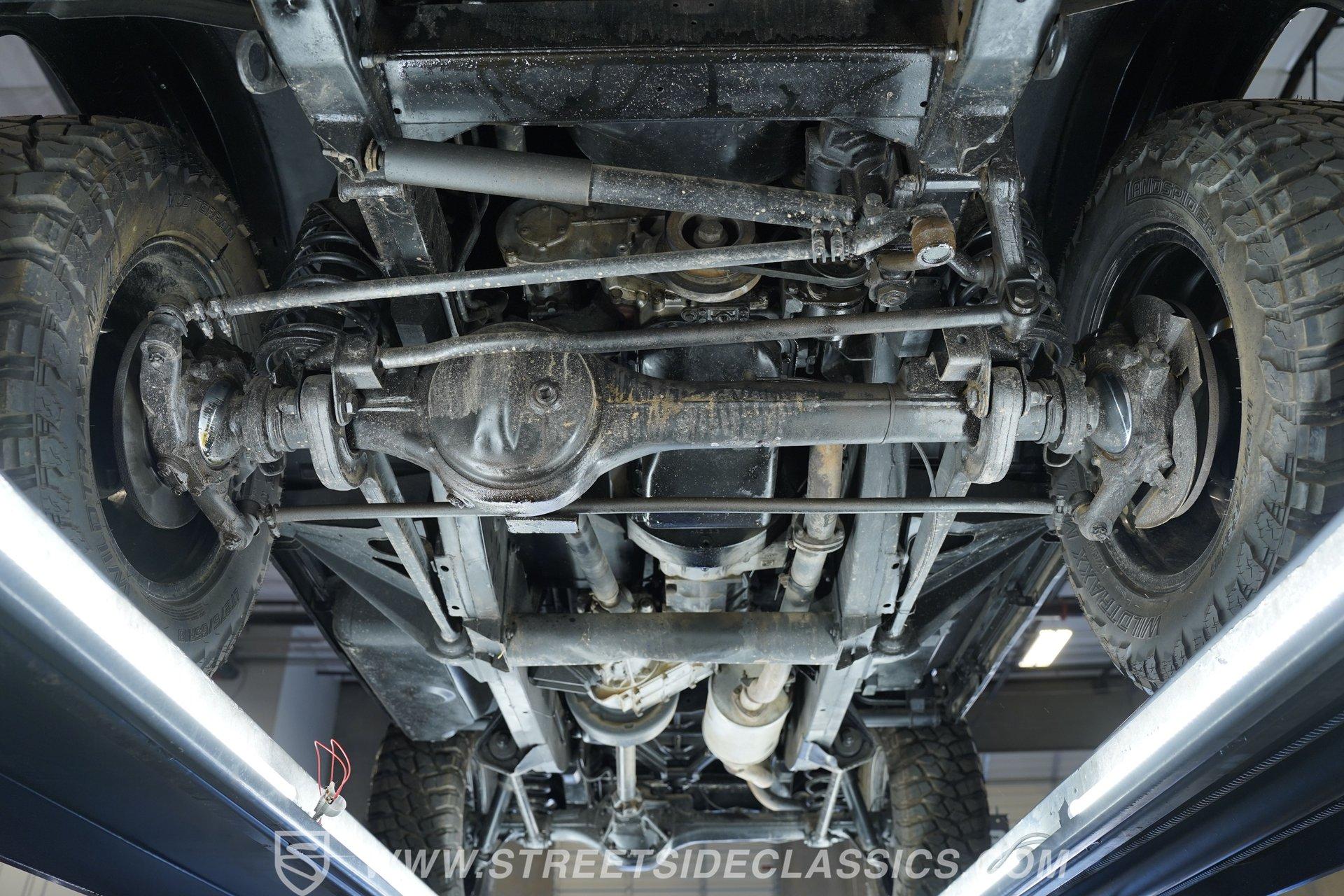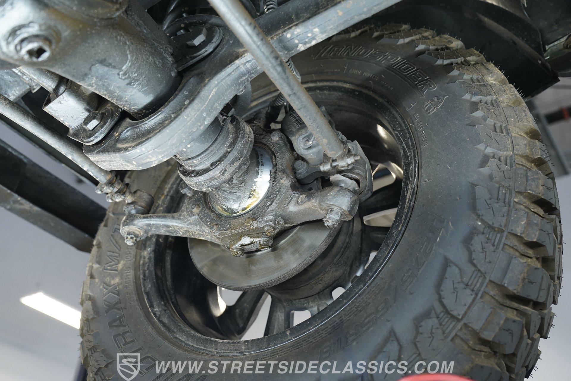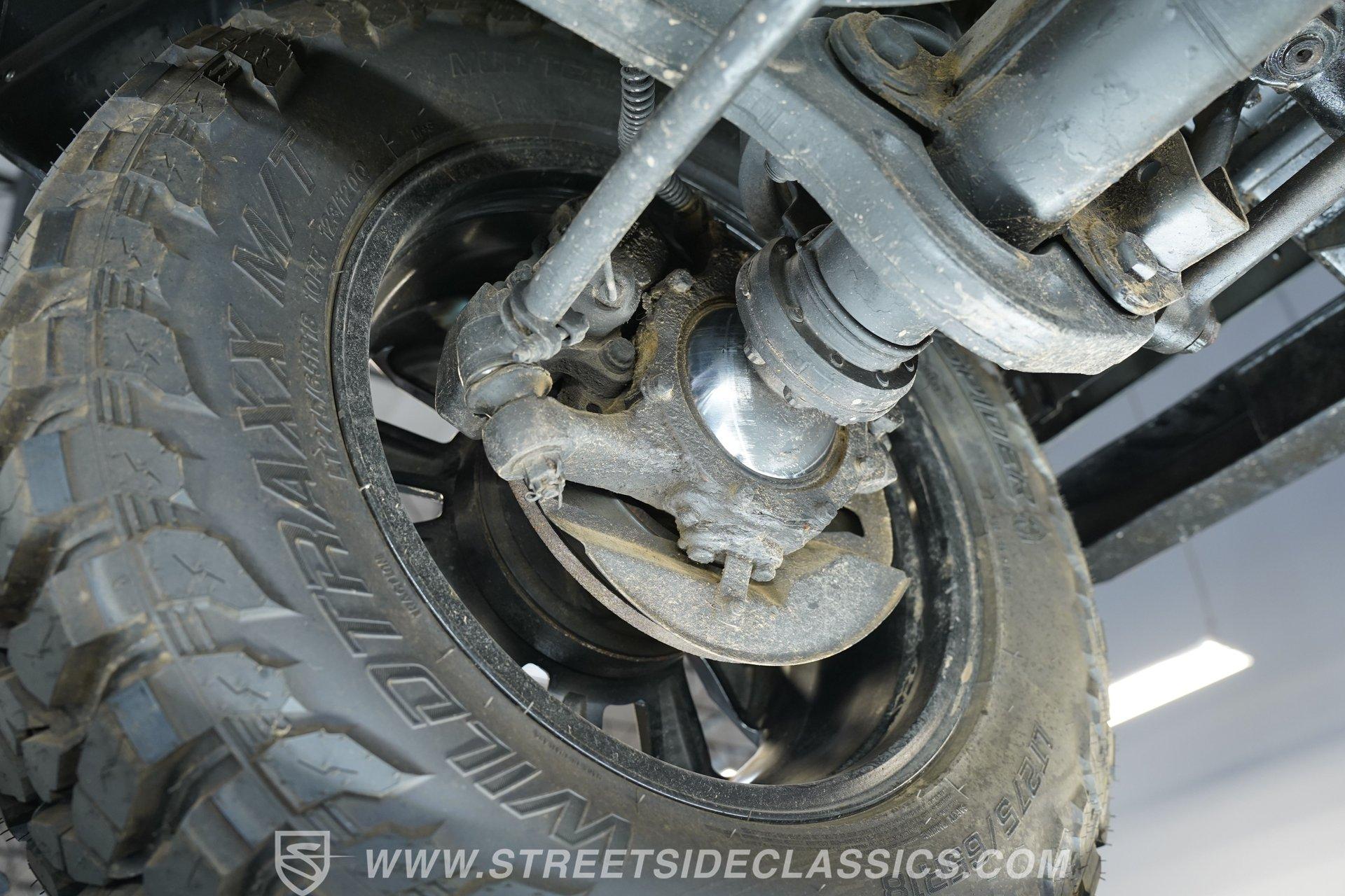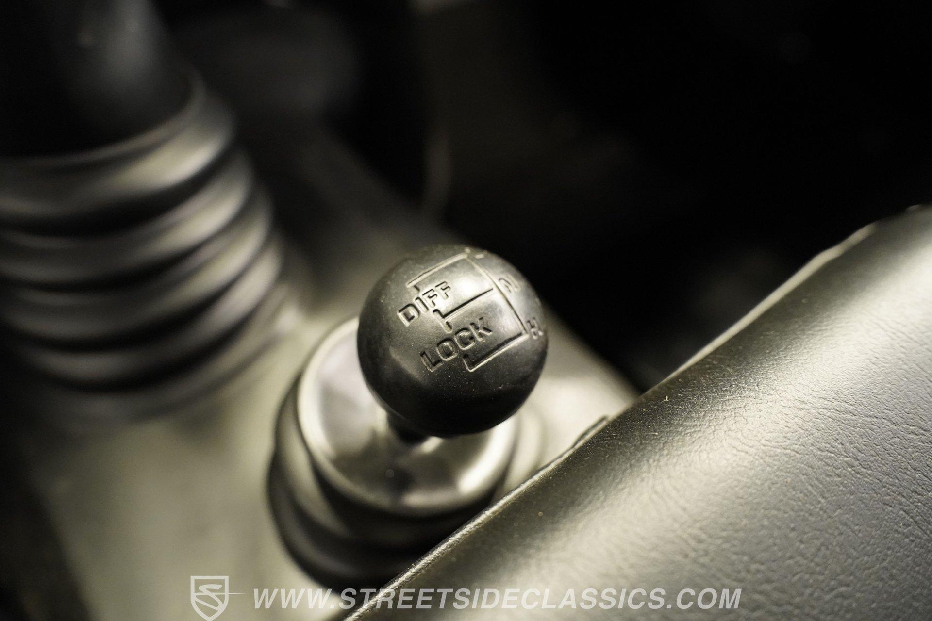Step inside to a cabin that is straightforward and functional, designed for those who prioritize adventure over luxury. The front vinyl bench seat offers durability and a vintage feel, while the factory-style gauge cluster keeps everything within easy view. The floor-mounted shifter and metal flooring with rubber overlay add to the rugged ambiance, making every touchpoint practical yet authentic. Although simple, the interior maintains the classic Defender vibe with a focus on utility and comfort.