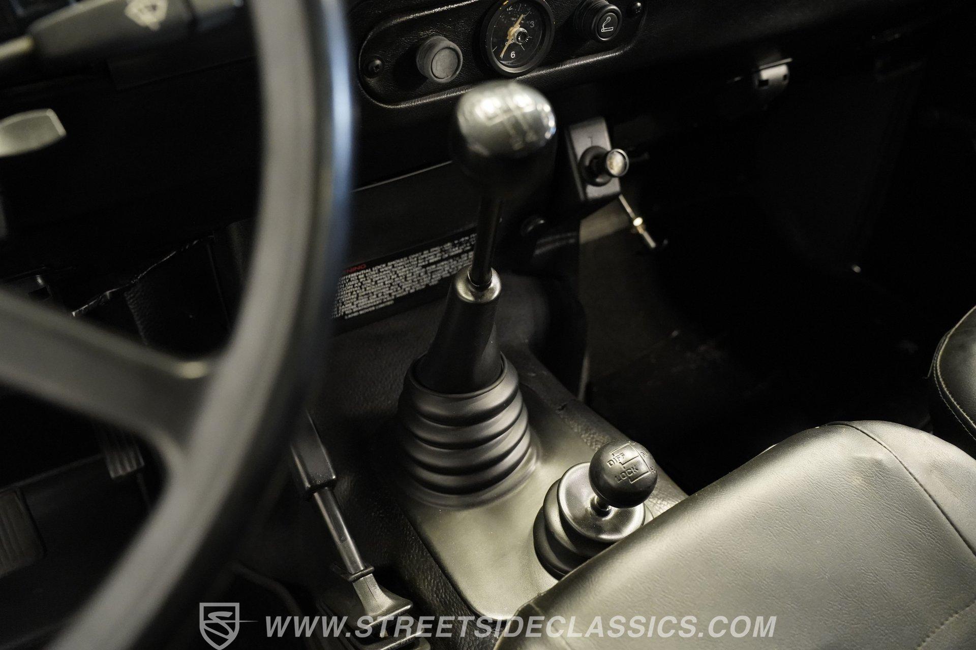 Under the hood, the 2.5-liter inline 4-cylinder diesel engine delivers a dependable fuel-injected powertrain that balances efficiency with off-road grunt. Paired with a 5-speed manual transmission and a full-time 4x4 system featuring a manually locked center differential and LT230R transfer case, this Defender 90 is engineered to conquer challenging terrain with confidence. The familiar rumble of the diesel, combined with power steering and power disc brakes up front, ensures a driving experience that is both thrilling and controlled, ready for any adventure you throw its way.