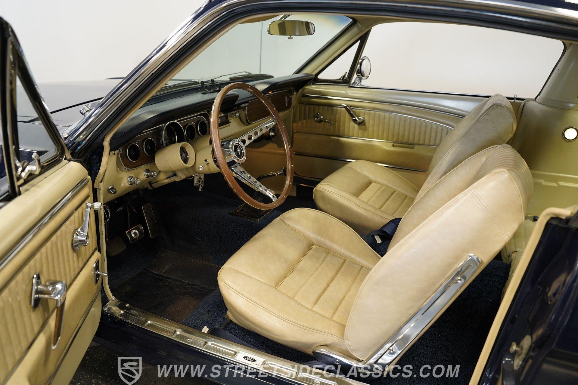 Under the hood lies a spirited 289 V8 paired with an Edelbrock single 4-barrel carburetor and Edelbrock intake manifold, delivering a robust rumble and exhilarating performance. The Tremec 5-speed manual transmission provides precise shifting that connects the driver intimately with the road. Complemented by a newer aluminum radiator and dual exhaust with Xlerator mufflers, this Mustang offers smooth cooling and an aggressive exhaust note. Power disc brakes front and rear, along with power steering, ensure confident handling and stopping power, making every drive a thrilling experience.