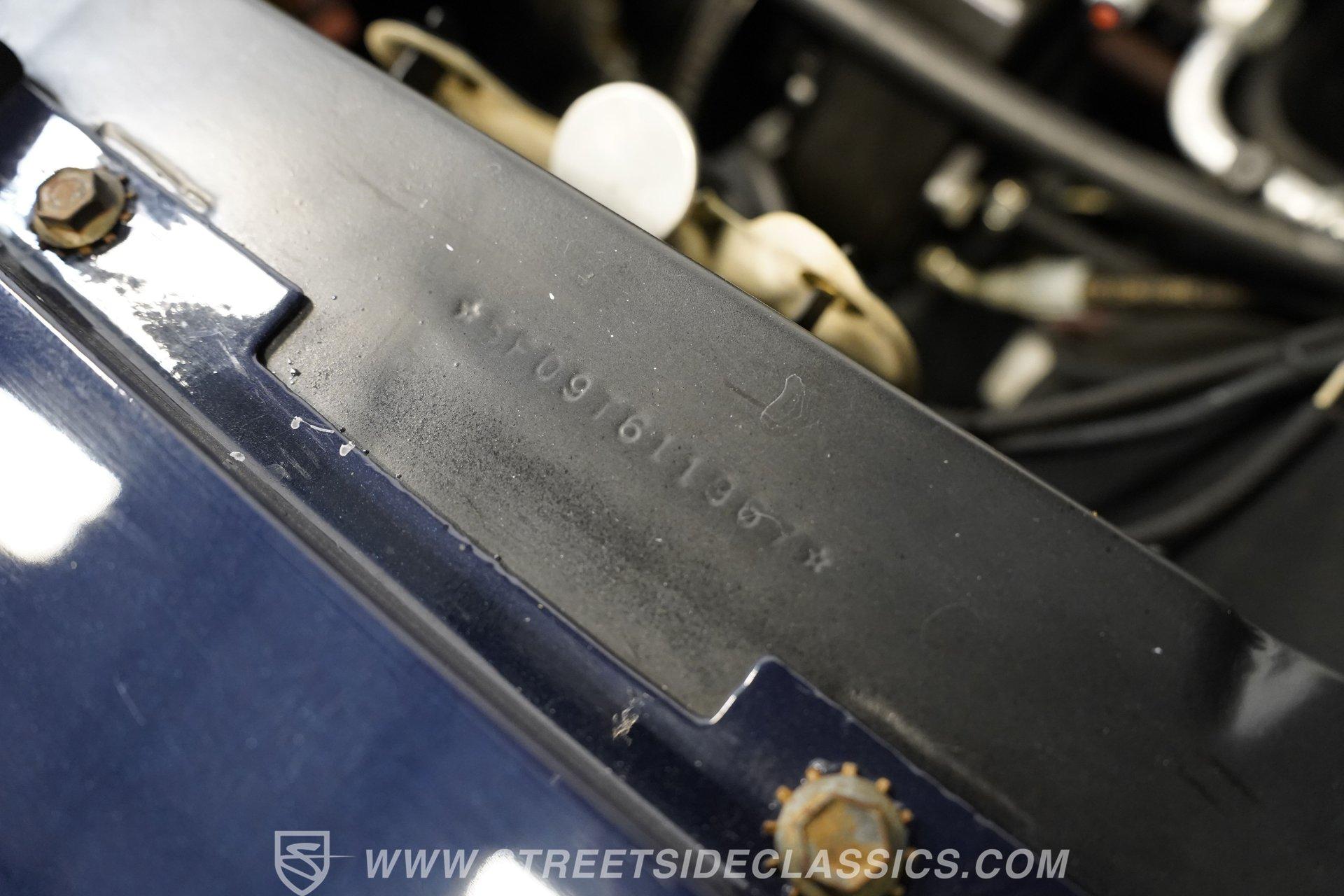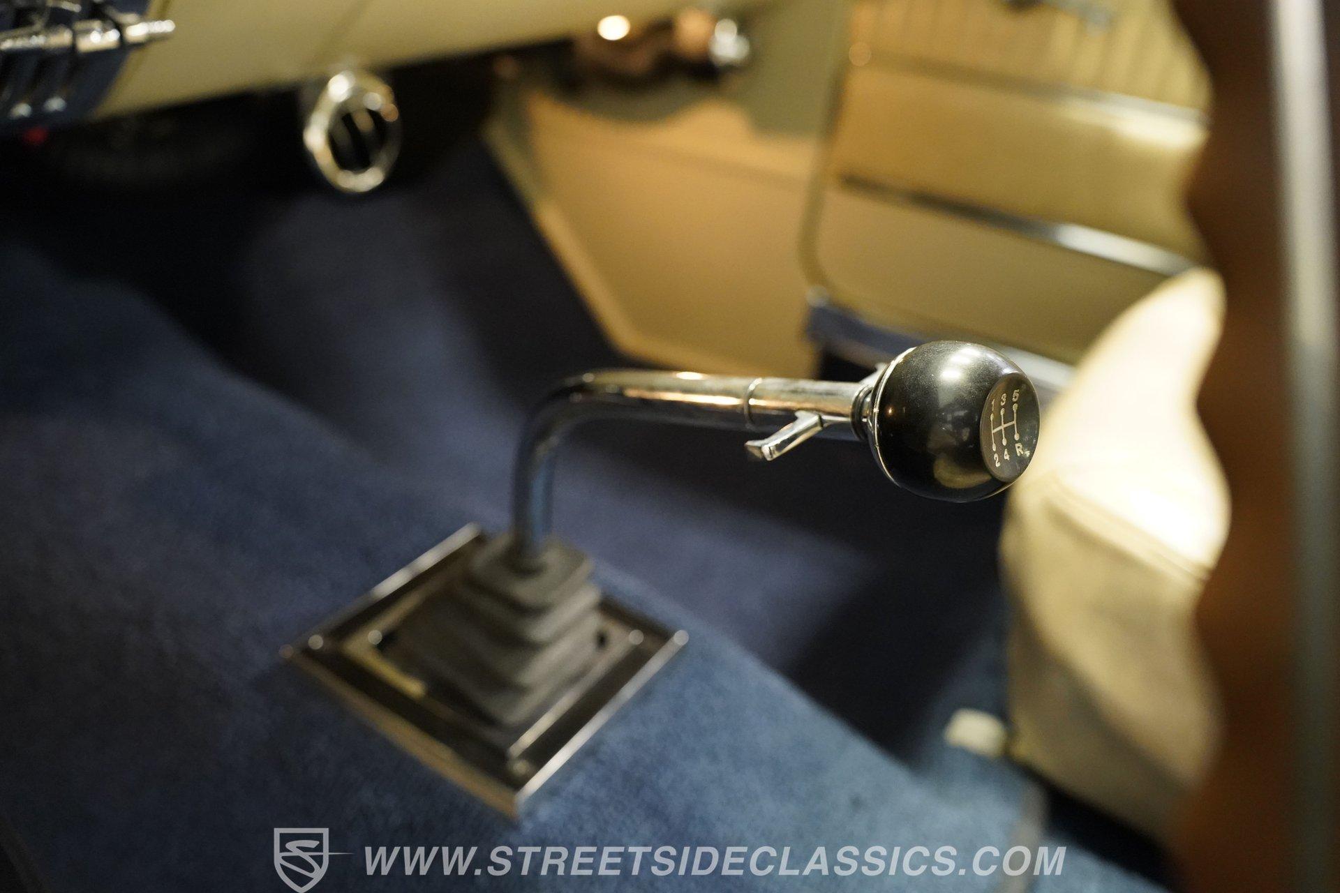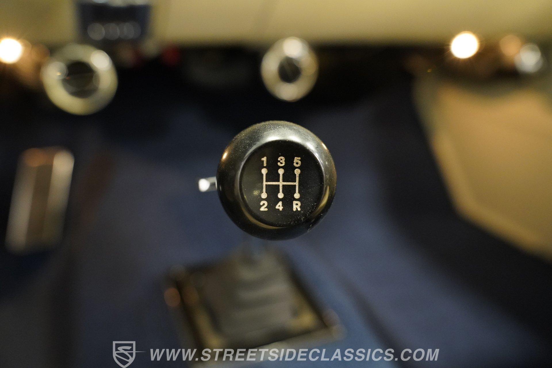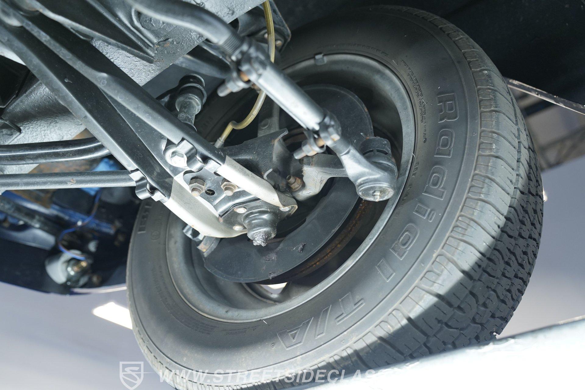 Step inside to a cabin that blends vintage charm with practical comfort. The light vanilla interior features front vinyl bucket seats and a rear vinyl bench wrapped in pleasing tones, complemented by a matching headliner and door panels. The blue carpet adds a splash of color underfoot, while the floor shifter places control squarely in your hands. Factory-style A/C controls and an AM/FM radio with AUX input ensure a pleasant driving environment, enhanced by a clean, solid feel that invites you to settle in and enjoy the ride.
