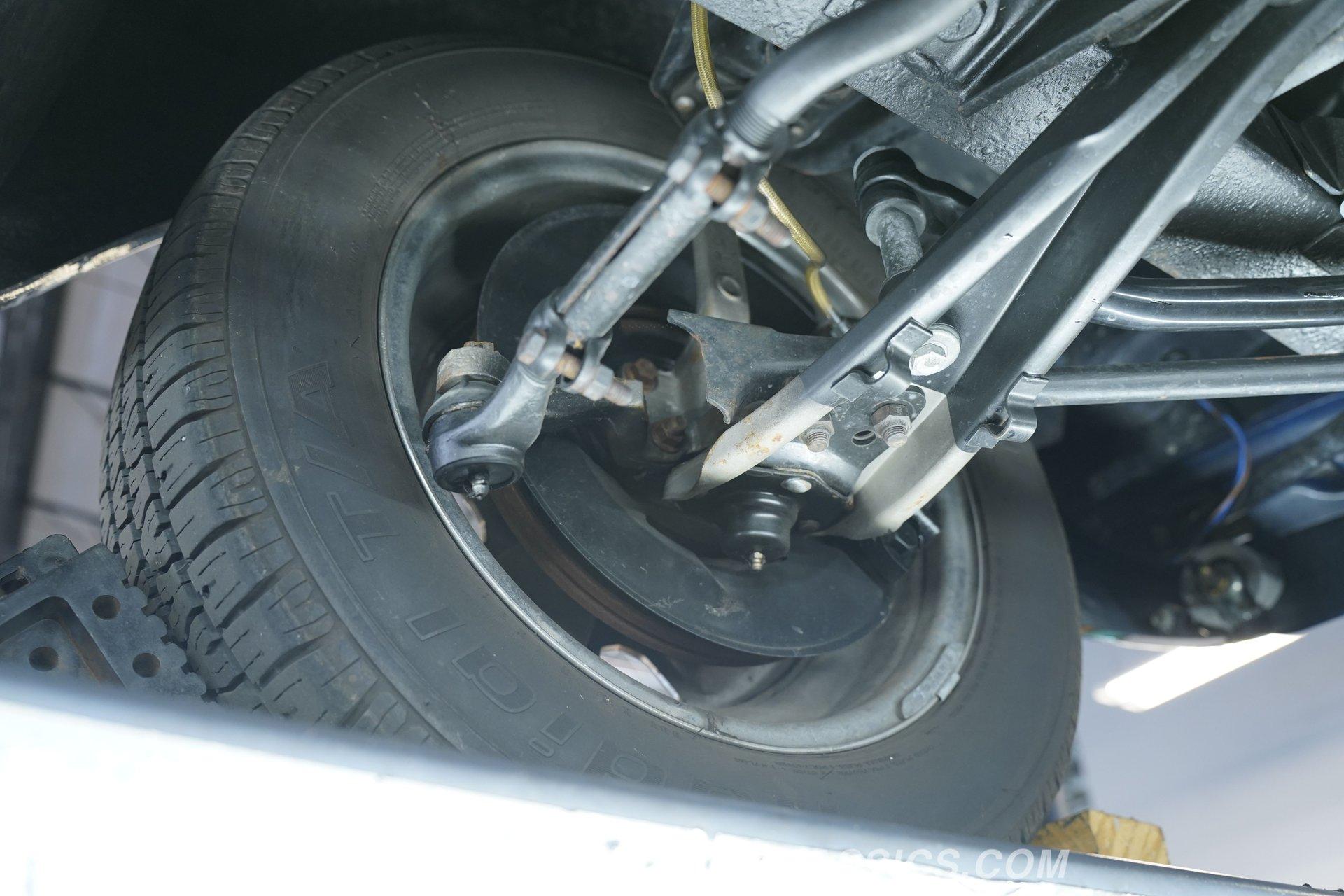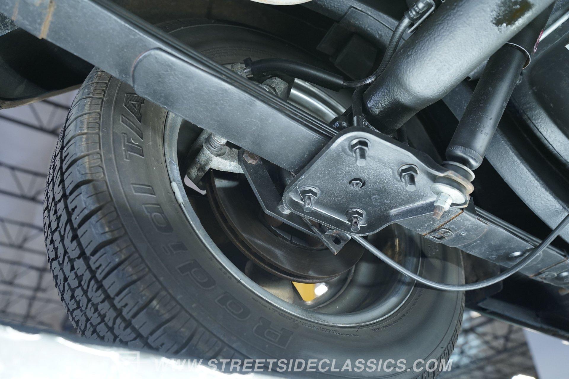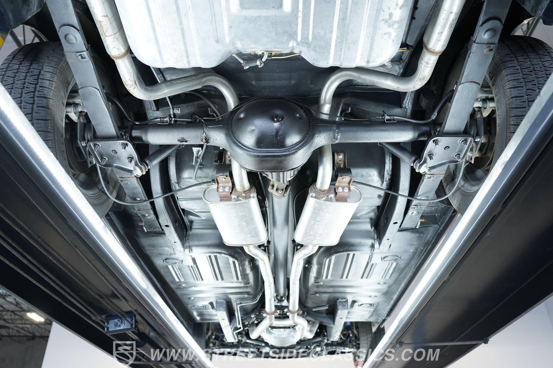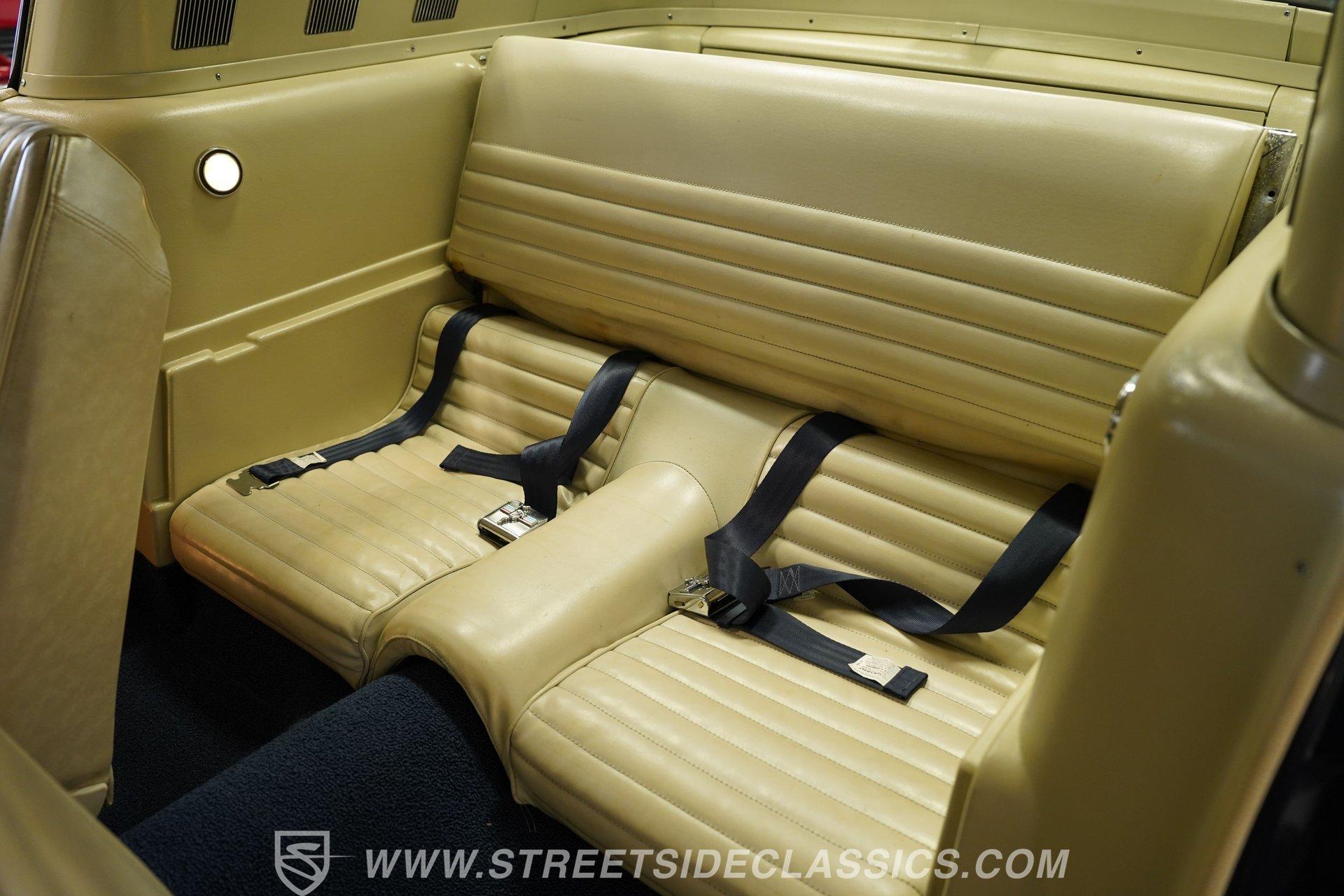 Step inside to a cabin that blends vintage charm with practical comfort. The light vanilla interior features front vinyl bucket seats and a rear vinyl bench wrapped in pleasing tones, complemented by a matching headliner and door panels. The blue carpet adds a splash of color underfoot, while the floor shifter places control squarely in your hands. Factory-style A/C controls and an AM/FM radio with AUX input ensure a pleasant driving environment, enhanced by a clean, solid feel that invites you to settle in and enjoy the ride.