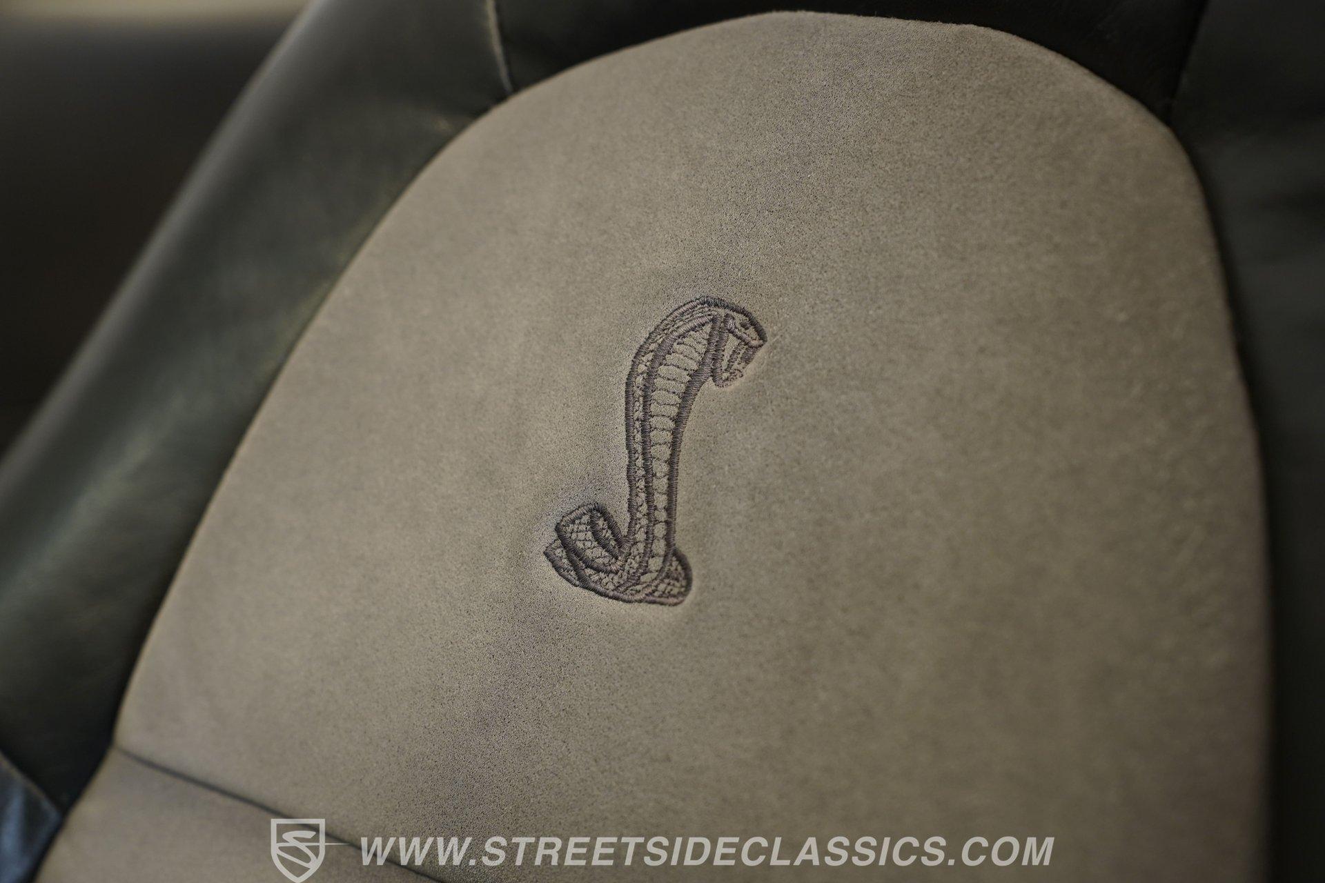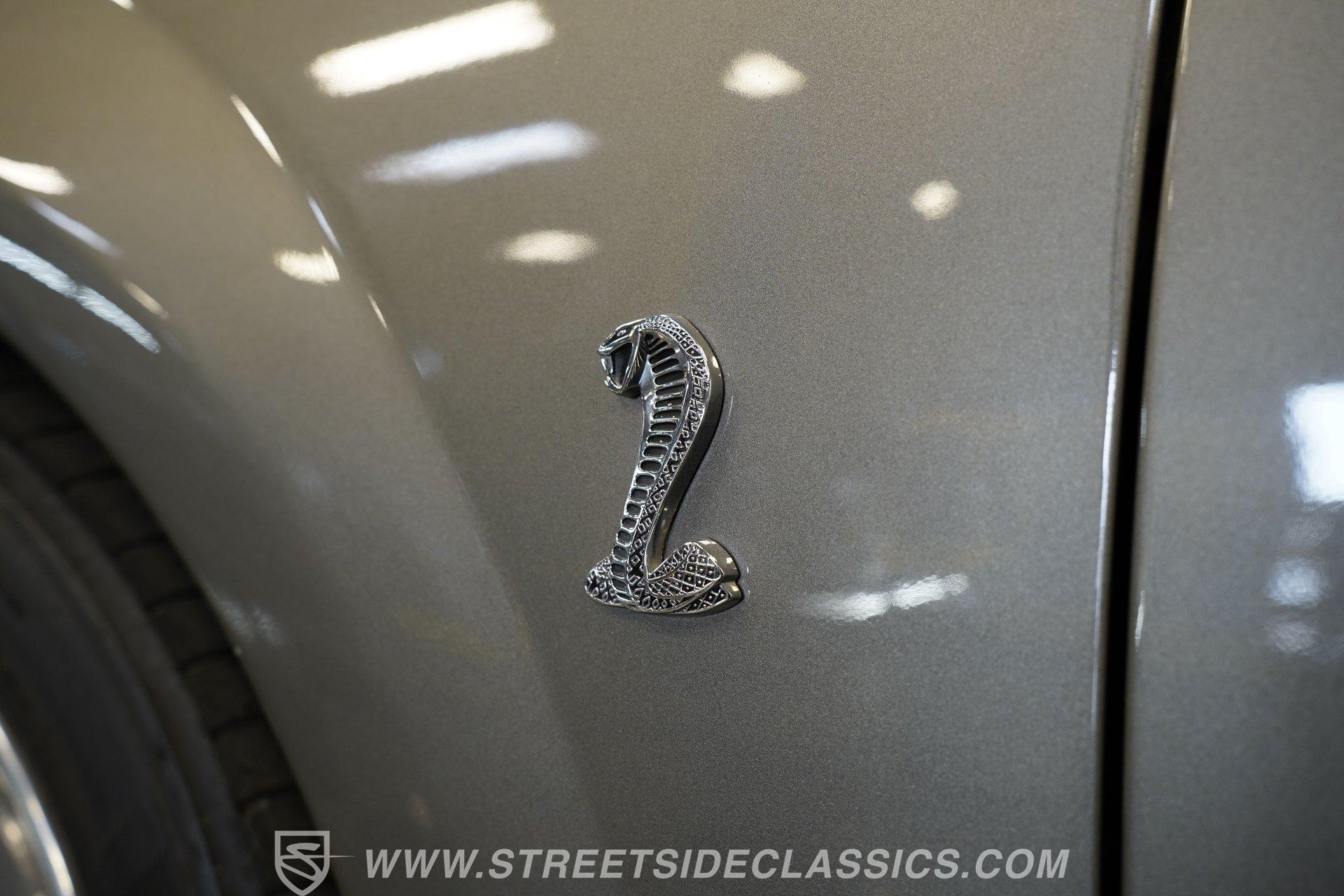 Step inside and be embraced by a cabin that balances luxury with sportiness. Black leather seats with suede inserts, accented by Cobra emblems, provide exceptional comfort and style. The gray interior features well-kept carpeting and a dashboard in superb condition. Power windows, seats, mirrors, locks, and a power convertible top add modern convenience while classic touches like the factory radio and gauges keep the cabin true to its heritage.