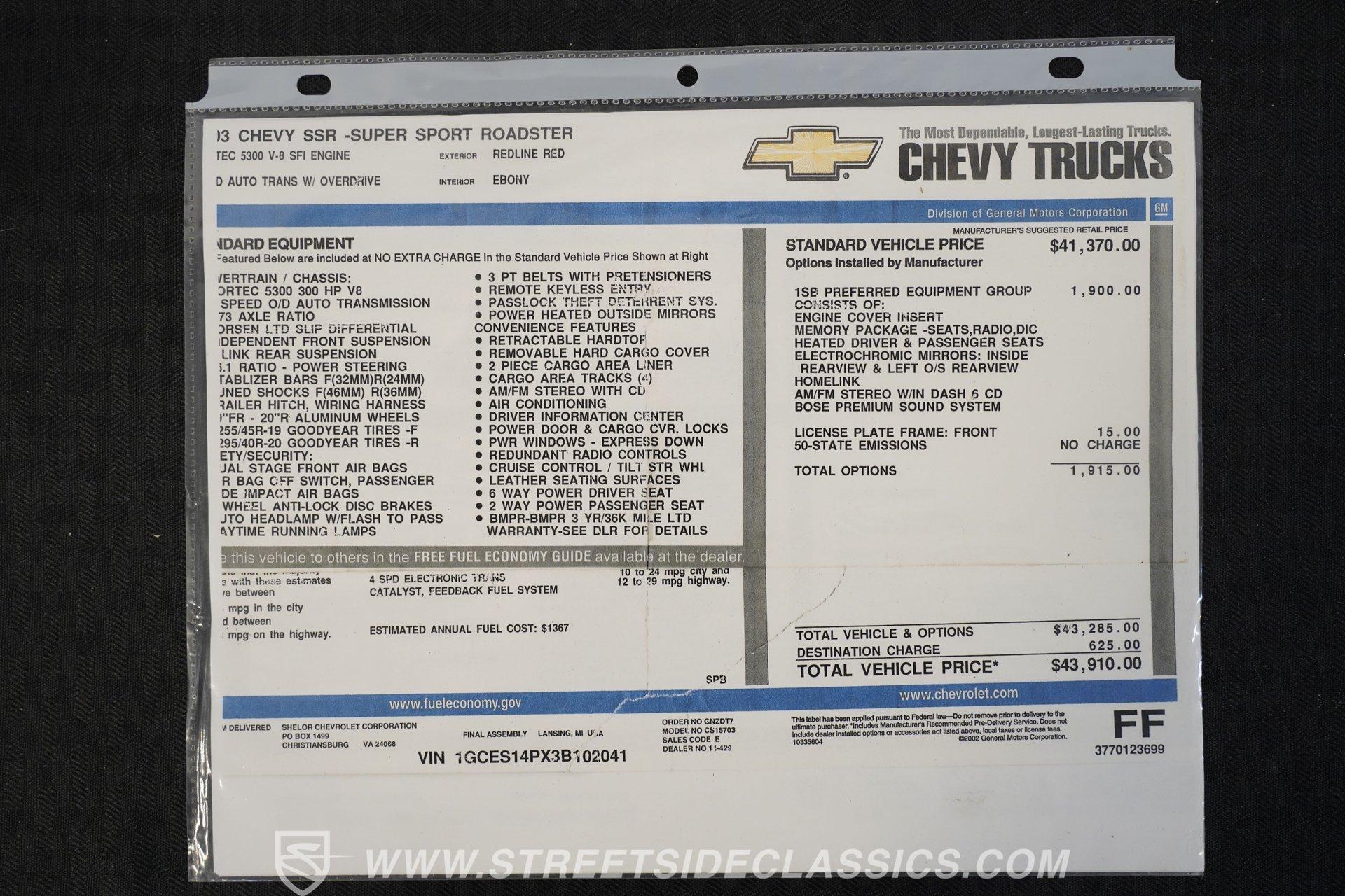 - VIN Code1GCES14PX3B102041