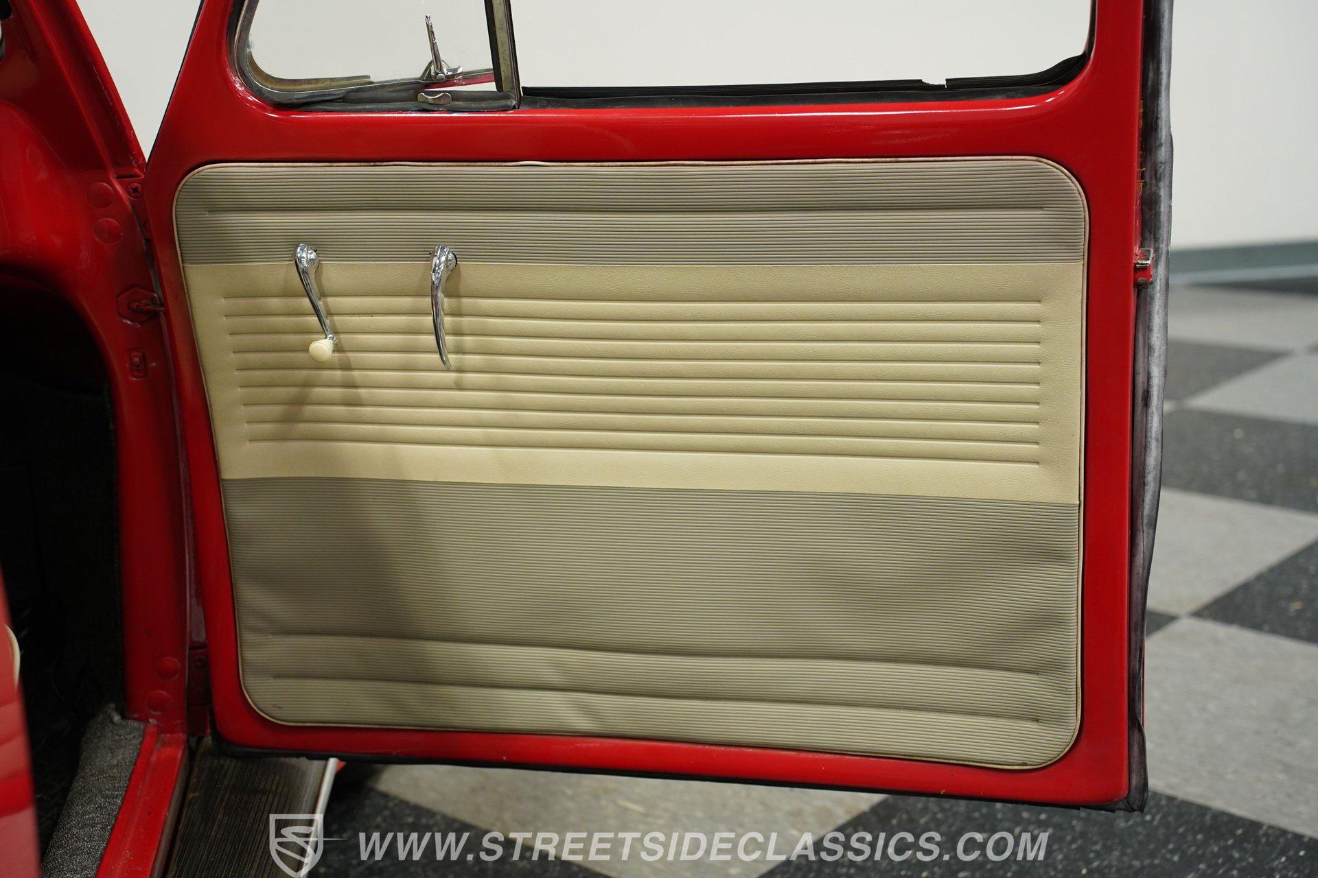 In the rear sits a 1600cc single-port flat 4-cylinder engine. Bolted to it is a 4-speed manual transmission that runs power through a VW transaxle. The front suspension features a Link Pin design with shocks, while the rear uses a swing axle design with shocks. The 15-inch wheels sport VW center caps and are wrapped in 195/60R15 tires. Manual drum brakes are fitted at all four corners, while stock-style manifolds and dual exhaust handle the airflow.