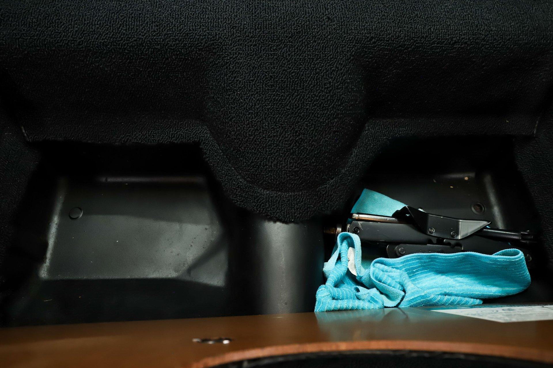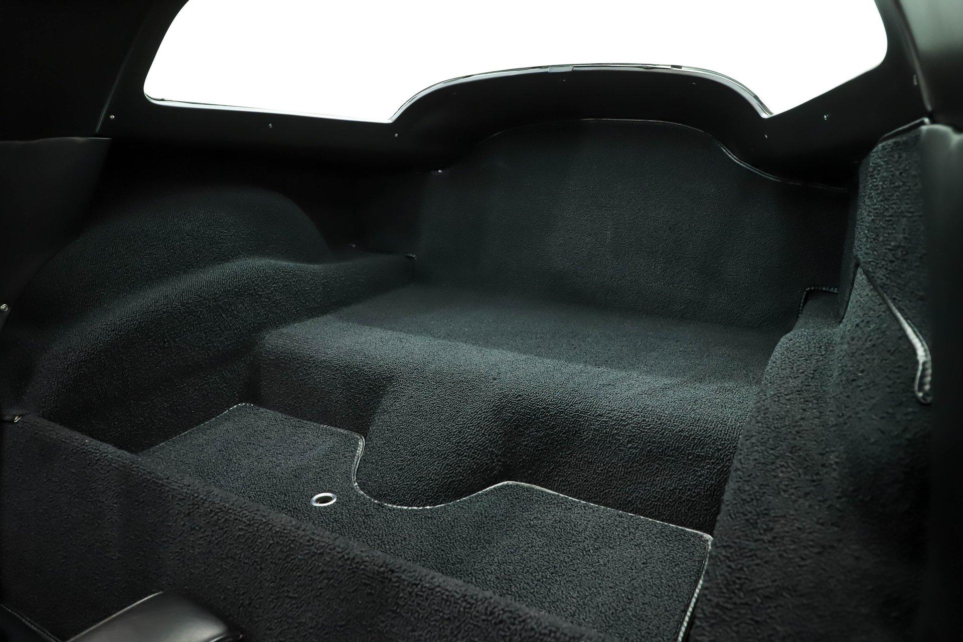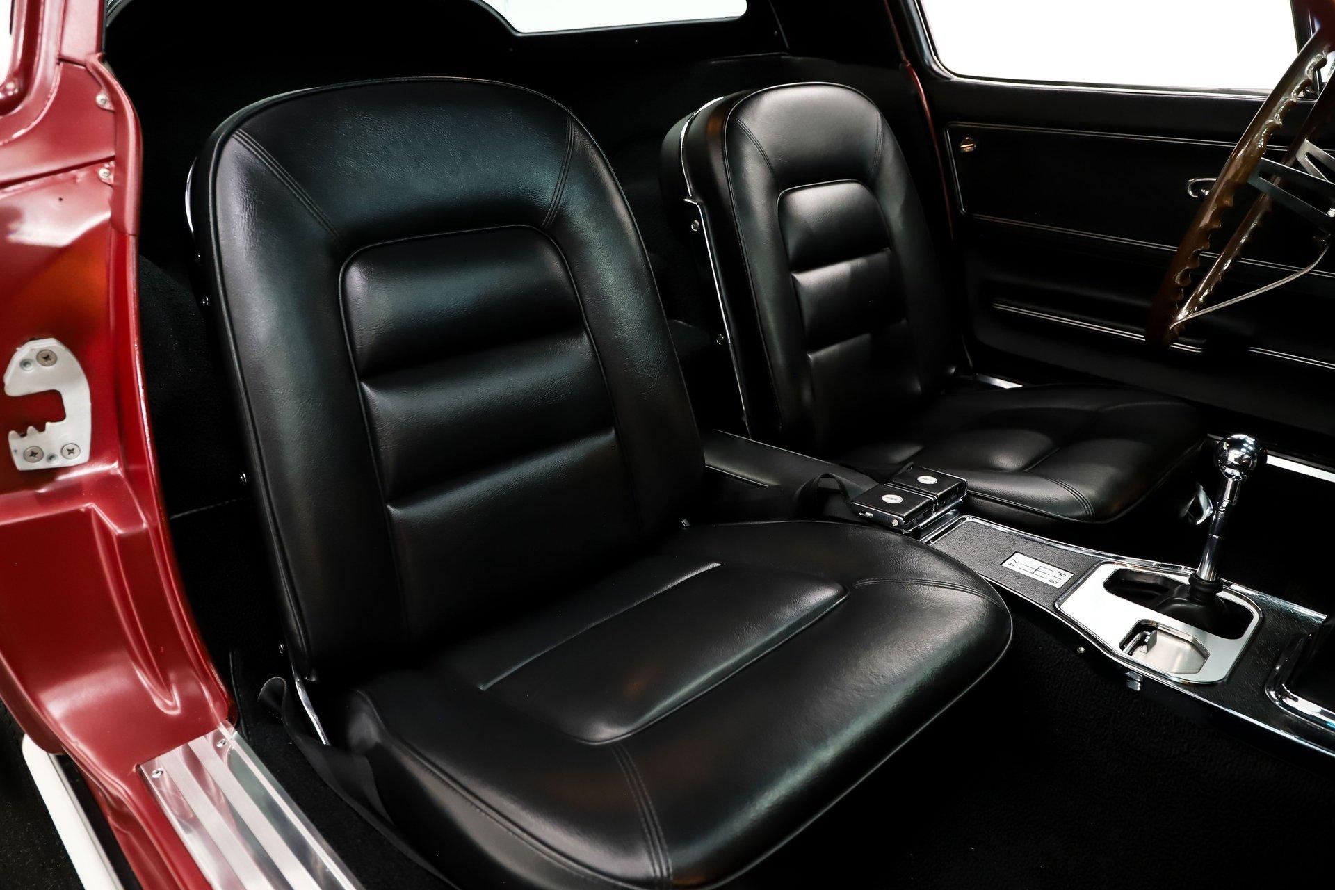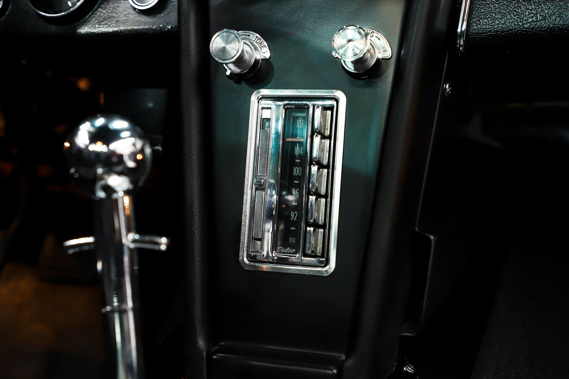 INTERIOR: I'm sitting in what may be the nicest C2 Corvette interior I've ever experienced. Everywhere I look- every nook and cranny- the fit and finish is like brand new, reflecting the quality expected of a judged show car. The gauges have been professionally restored, including the correct 6,500 rpm redline tachometer. Even the clock has been restored using its original movement rather than a quartz conversion, so it ticks exactly as it should. It features a factory AM/FM radio with a power antenna. The glovebox door, liner, and dash pads are all in mint condition. The center console is excellent, complete with the correct reverse lockout shifter, while the bowtie seat belts present beautifully. Fresh carpet runs front to back with an excellent fit and includes reproduction floor mats. The seats have been completely rebuilt with new cushioning and upholstery, showing no wrinkles or marks. The door panels and hardware look brand new. All trim pieces, steering wheel, visors, and the mirror are in excellent condition. The interior lights are functional, and it even retains the correct jack in the storage compartment behind the seat.