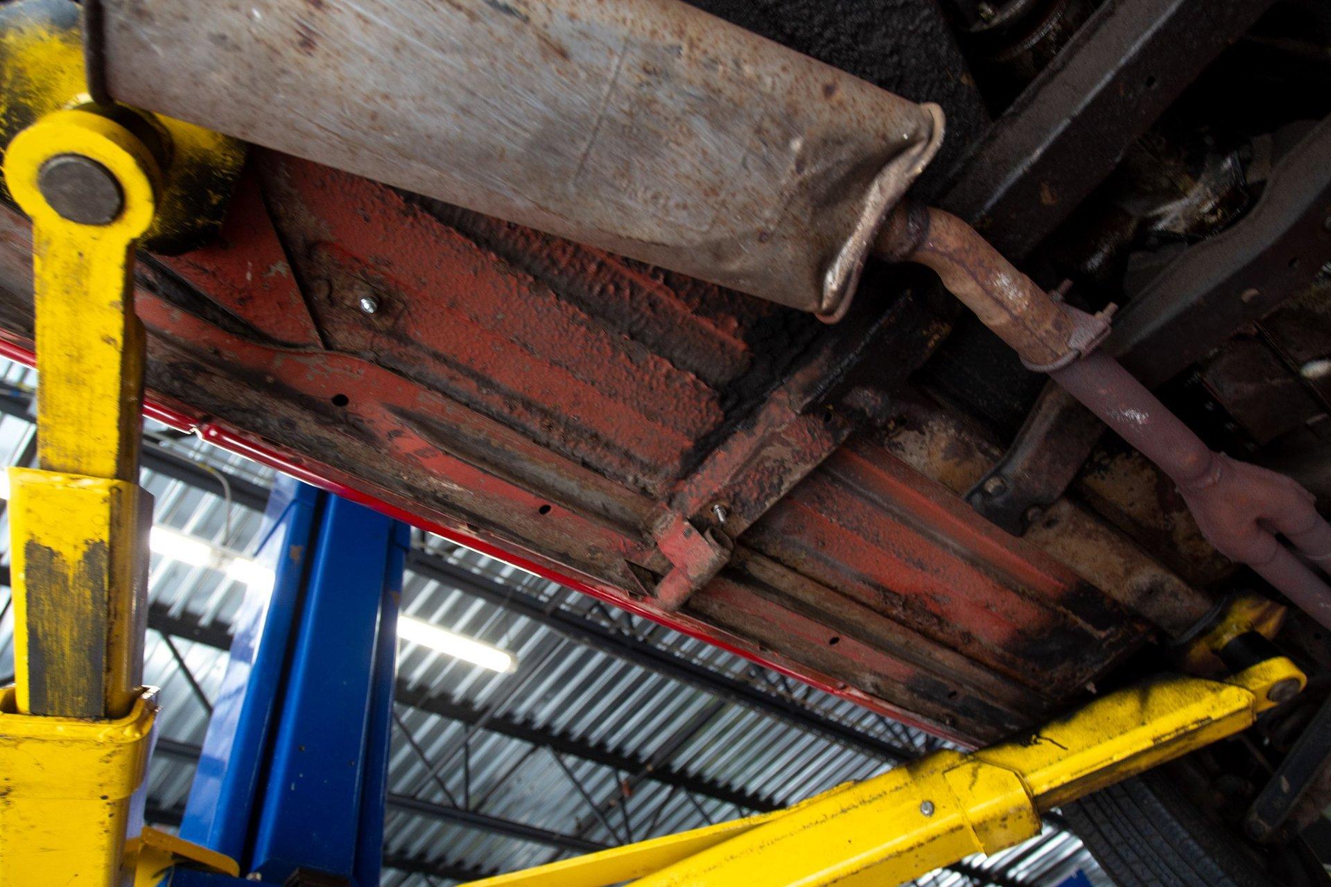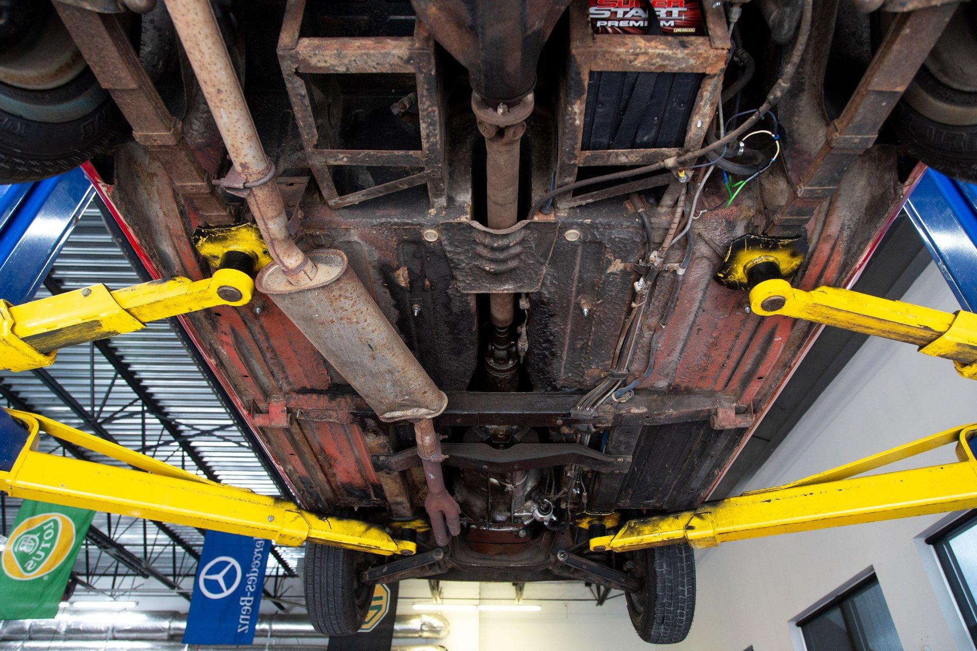Note the undercarriage pictures showing original pans and battery trays.