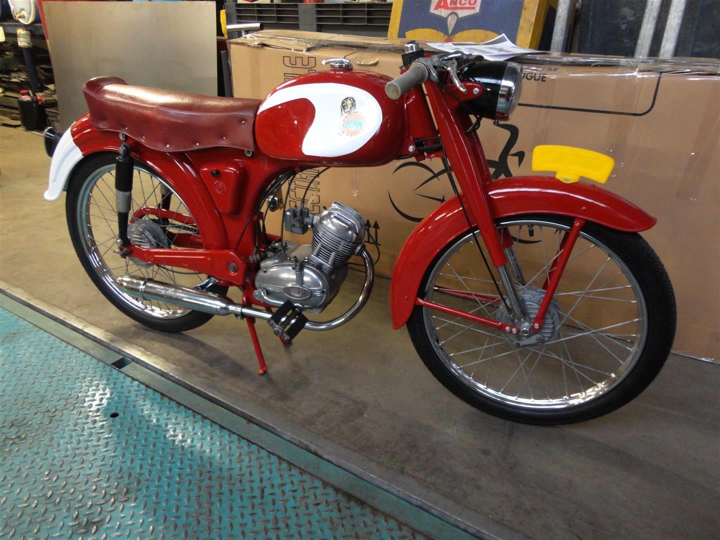 A beautiful and good running 1958 Demm 4stroke 50CC Italian moped. In perfect condition. Big choice in bikes and mopeds in ''''the Stolze Collection''''!