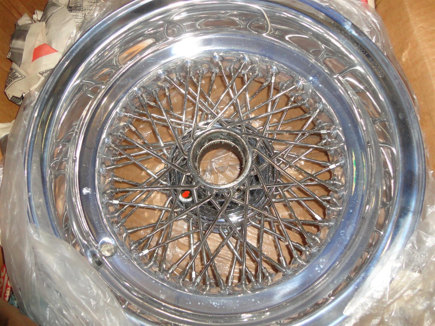 Several new and used wire wheels in "the Stolze collection"This number was used on the wheels of a Maserati Mistral.