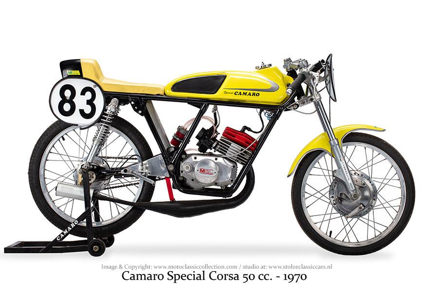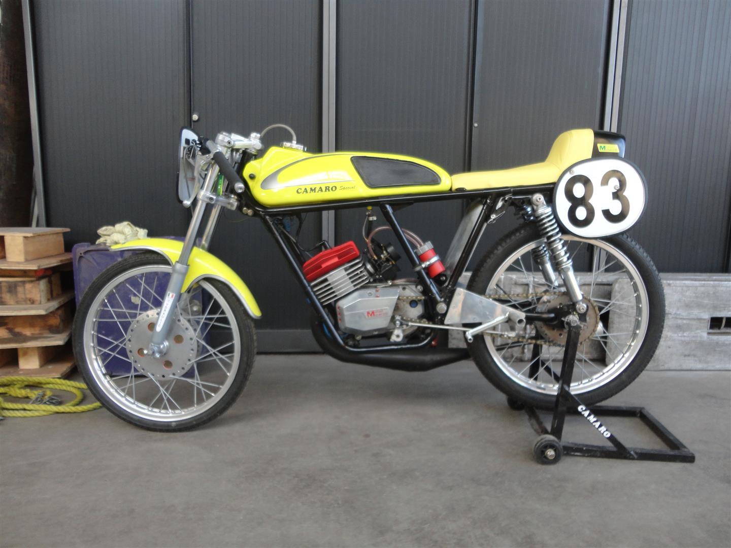 A unique 1970 Camaro Special. Built in Holland (Rotterdam) With an Italian 50CC block. A very special and real racer that reaches 170 Km/h. Ready to do any classic bike race! In PERFECT condition and all Original. Limited production. Big choice in bikes and mopeds in ''''the Stolze Collection''''!